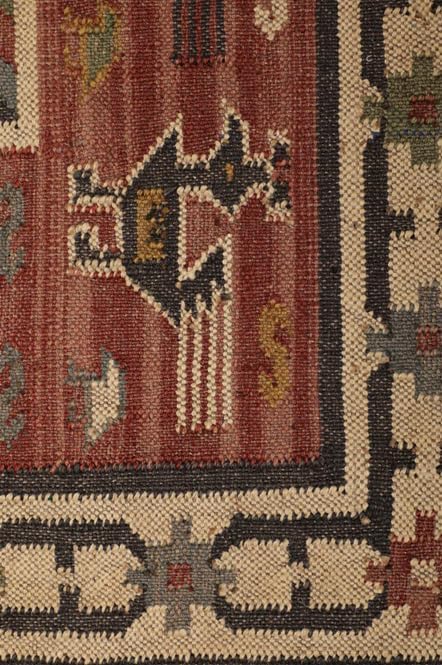 Elevate your space with this hand woven jute Kilim rug from Sanwariya Rugs. The flatweave rug features a coarse texture and animal motifs in brown, black, and taupe tones. Inspired by nomadic weaving traditions, its design reflects cultural narratives and tribal patterns. Durable and versatile, it is ideal for living rooms or bedrooms, blending historical artistry with modern home decor.