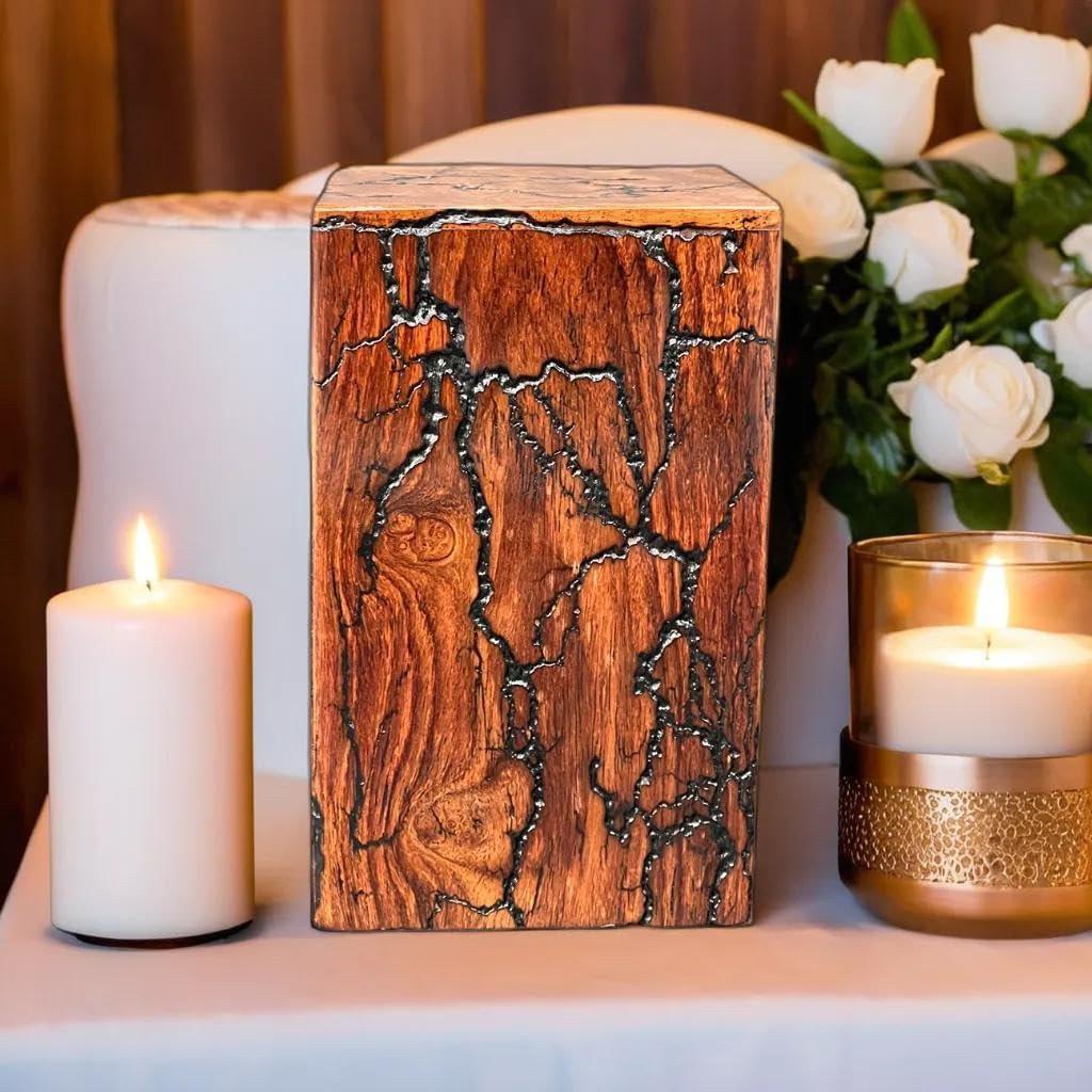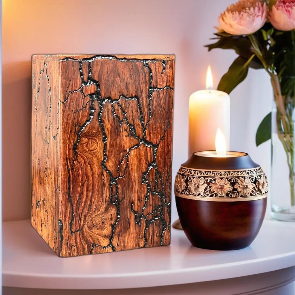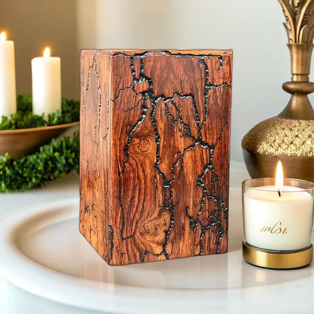 Honor your loved ones with this exquisite handcrafted box made from premium rosewood. Each box features unique fractal burning patterns, ensuring a one-of-a-kind design. The bottom sliding opening system provides secure and easy access. Ideal for storing ashes or cherished mementos, this memorial box combines natural beauty with thoughtful craftsmanship, offering a dignified and elegant tribute.