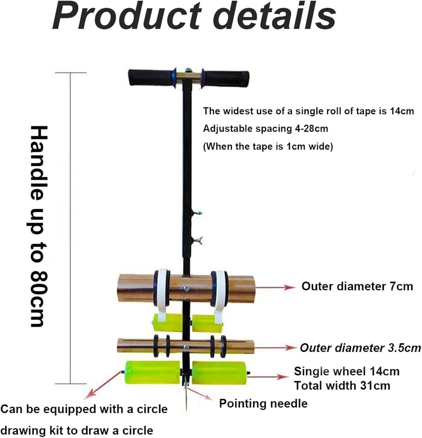 Introducing the Hand-Push Tape Marking Machine, your go-to solution for achieving precise and efficient tape markings across a variety of environments. Perfect for sports facilities, parking lots, and commercial spaces, this innovative machine simplifies the process of creating clear and organized demarcations, enhancing both safety and functionality. Constructed from durable stainless steel and high-quality plastic, this lightweight machine weighs only 6200g, making it easy to maneuver and transport wherever needed. With an adjustable spacing range of 4cm to 28cm, you can customize your markings to fit any project requirements. It accommodates tape widths of 3.8cm and 7.66cm, offering versatility for various applications. Whether you're marking gymnasium floors, outlining parking spaces, or establishing pathways in bustling offices, the Hand-Push Tape Marking Machine delivers professional-grade results with minimal effort. Its user-friendly design ensures quick setup and operation, making it an essential tool for any facility management toolkit. Please note that slight measurement discrepancies of 1-2mm may occur due to manual measurement. For the most accurate dimensions, please refer to the actual product. Additionally, color variations may exist due to lighting and monitor settings. Your satisfaction is our top priority. If you have any questions or concerns, feel free to reach out, and we will respond within 24 hours to provide prompt assistance. Enhance your marking efficiency today with the Hand-Push Tape Marking Machine—your reliable partner for clear, precise, and effective tape markings.