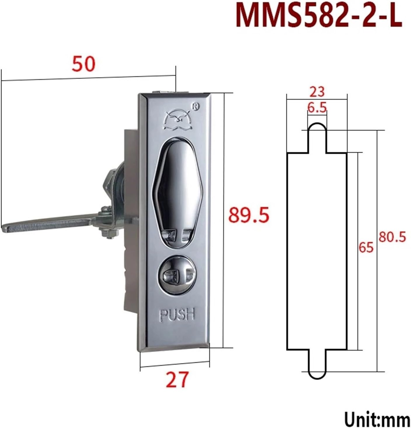 Latch【See the second picture of the variant for detailed parameters】 Item:MMS582LockType:CabinetLock&TruckLockKeyTypeFlatKeyMaterialZincAlloyFinishedElectrophoreticPaintSilver