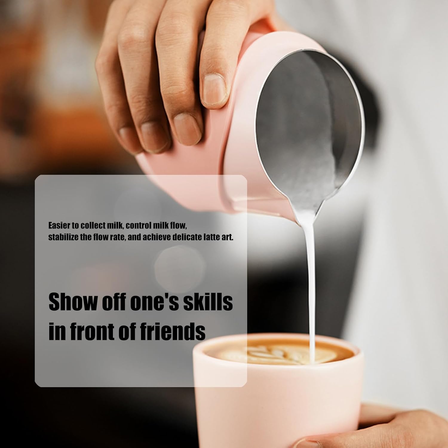 Handleless Milk Frothing Pitcher Stainless Steel Kitchen Tool For Latte Design Outdoors Coffee Art EquipmentFeatures:Our stainless steel milk frothing pitcher eliminates traditional handle constraints, enabling frees pour control for intricate latte art patterns with effortless maneuverability.Crafted from stainless steel, this baristas grade pitcher features ergonomic spout for precisions pouring and dishwasher safe construction that resists odors and stain.Ideal for professional baristas mastering complex rosettas and coffee enthusiasts seeking cafés results in homes kitchens or mobile coffee setups.Perfectly complements specialty coffee stations in modern households, boutique cafes, and pantries where space efficient tools enhances workflow efficiency.The sleek minimalists profile pairs with commercial grade durability, making this essential coffee art tool equally suited for daily home brewing.Specifications:Component: Stainless SteelSize:Approx.9x9x9.5cm/3.54x3.54x3.74inchColor:Black/PinknessWeight:180gPackage Includes:1PC Milk Frothing PitcherNote:1.Please allow 1-2cm errors due to manual measurement, make sure that you will not mind before you order. 2.Due to the differences between different monitors, the picture may not reflect the actual color about the item.