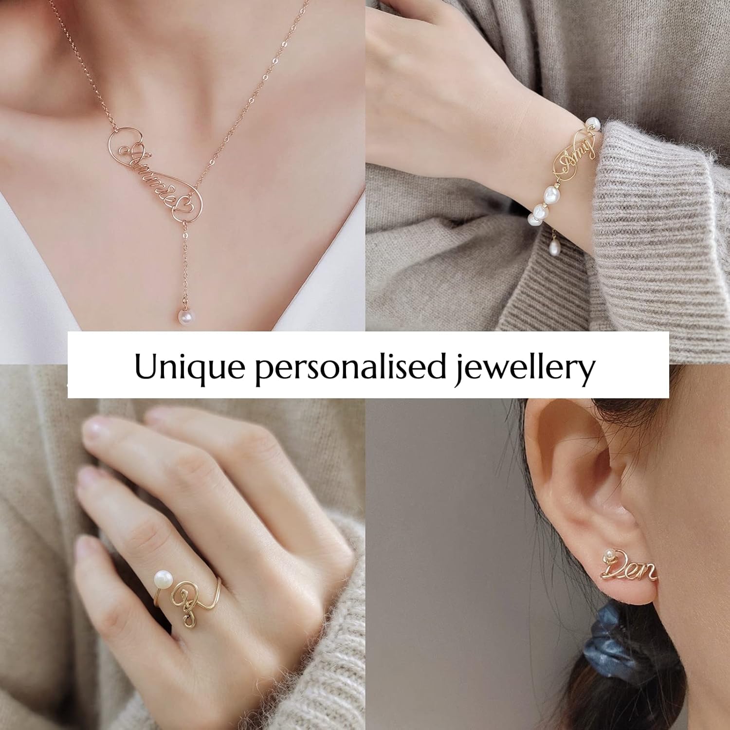 Our jewelry is made of 14k gold, which is gold-filled rather than gold-plated. It is really wrapped in pure copper by thick gold pieces. The two are highly combined and can be used for many years without losing the golden texture and color. You can customize a brooch, necklace or ring with your name, your family's name, your bestie's name, your bridesmaids' name, your pet's name. Unique custom jewelry for any occasion. We also come with a gift box for you to give to your loves. Because it is purely hand-made, it cannot be guaranteed to be perfect. In addition, once the customized product is made, it does not support return or exchange. Thank you for your understanding.
