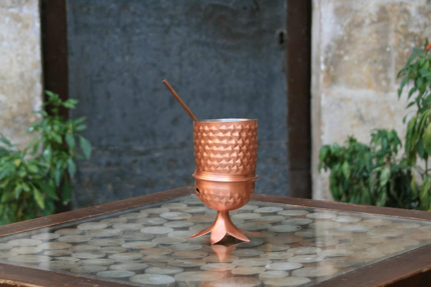 # Our Completely Handmade Copper Pineapple Cocktail Glass sets; It is carefully prepared by our expert masters. #Handmade Copper Pineapple Copper Cocktail Cup and pipette/Copper Cocktail Cup, Pineapple Cup, Christmas, !!!BUY MORE, PAY LOWER!!! # It is tinned inside. # mug 380 gr, # Our prices vary according to quantity, weight and pattern workmanship. #We can customize our products individually. Just contact us. #Our shipping is free. COPPER USAGE INSTRUCTIONS # Do not use metal spoons. # Do not store dishes in pots, only use them for cooking and serving at the table. # Do not machine wash your copper products. # Wire etc for cleaning. Do not use scraping products/substances. # High temperatures, salt, acidic dishes may cause stains or different color alloys, but these are not manufacturing defects. # To clean the darkening that occurs during use; Clean using lemon, salt and vinegar. # Hand wash and dry BENEFITS OF USING COPPER IN LIVING AREAS # Correct growth of the body, # Contains healthy hair and eyes. # It prevents premature aging. # Increases energy production. # Regulates your heart rhythm # Fast wound healing, # Skin care, # Brain stimulating # Increases immunity # Lowers cholesterol levels # If you keep the water in the copper jug and drink it, the purified water will have minerals.