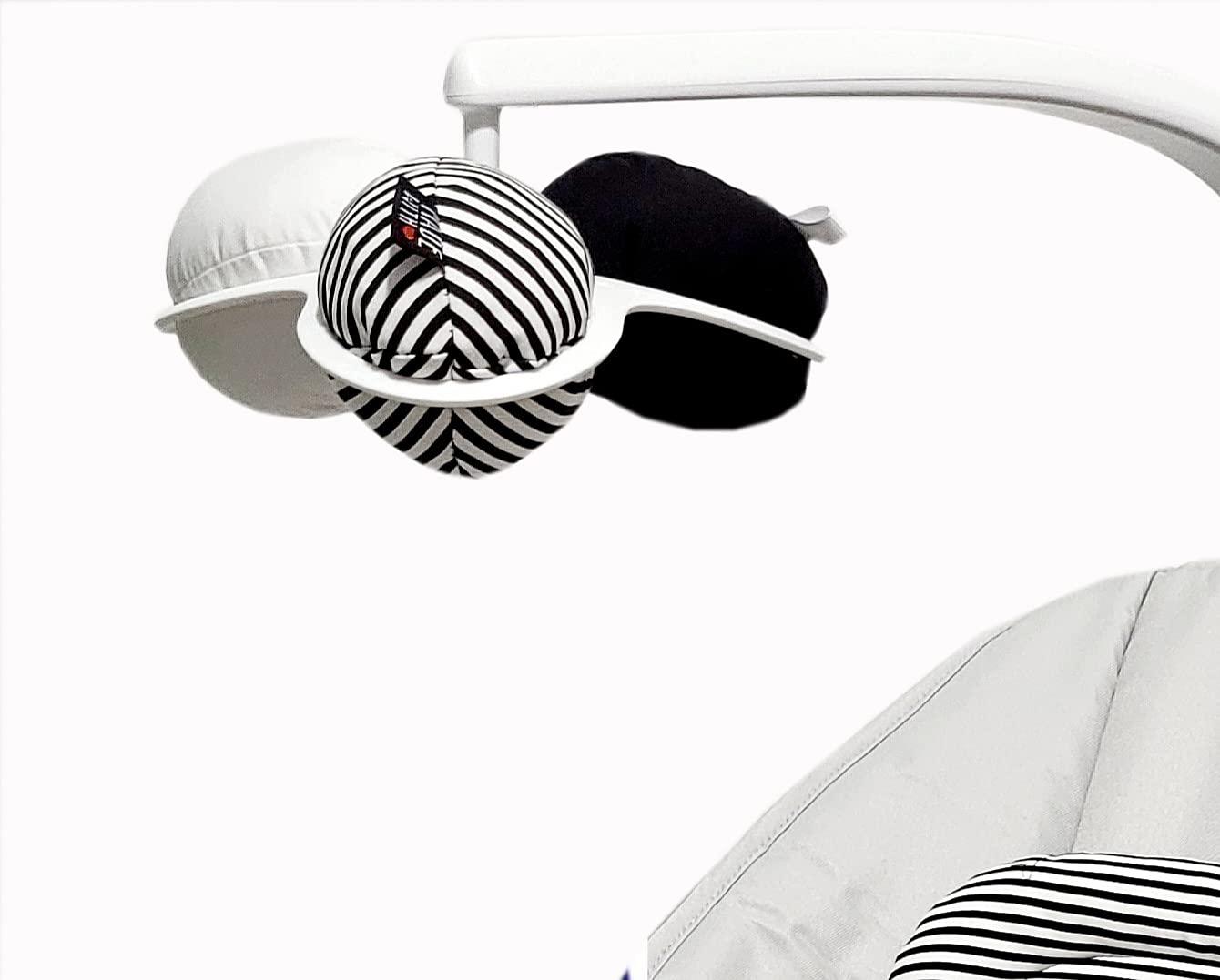Handmade replacement toy balls perfectly fit mamaRoo swing mobile and have different sounds. One ball has crinkle sound, second ball has a rattle sound, and the third ball has a red stripe that attracts the eyes of the newborn. Toy balls could be used during tummy time. Handmade from 100% cotton. Balls are stuffed with hypo-allergenic polyester fibers. Machine wash on gentle with warm water. Air dry or tumble dry on air or low heat setting. Set included 3 toy balls. Balls fit MamaRoo model 4,1026,1037,1046 and new 2022 model