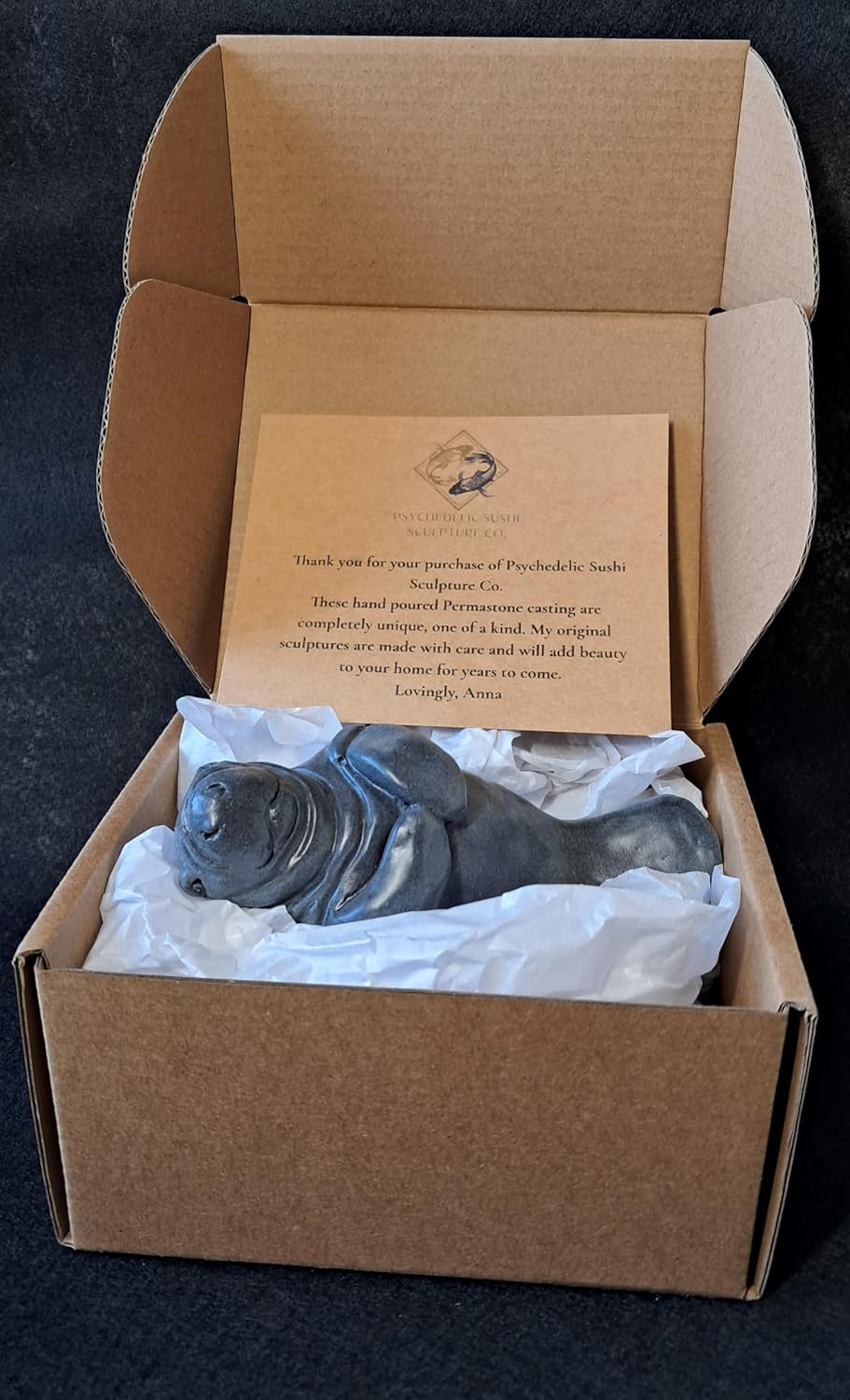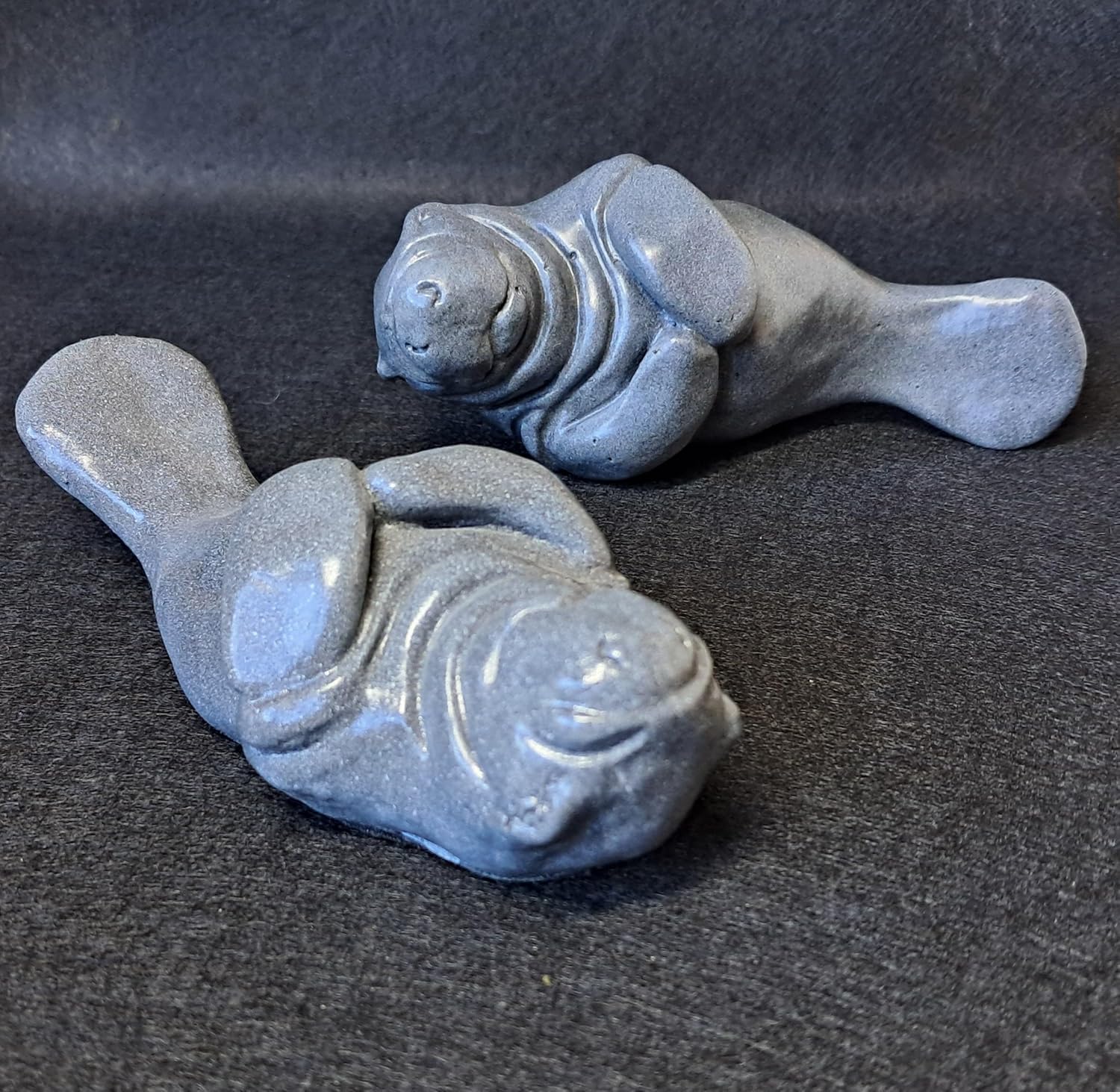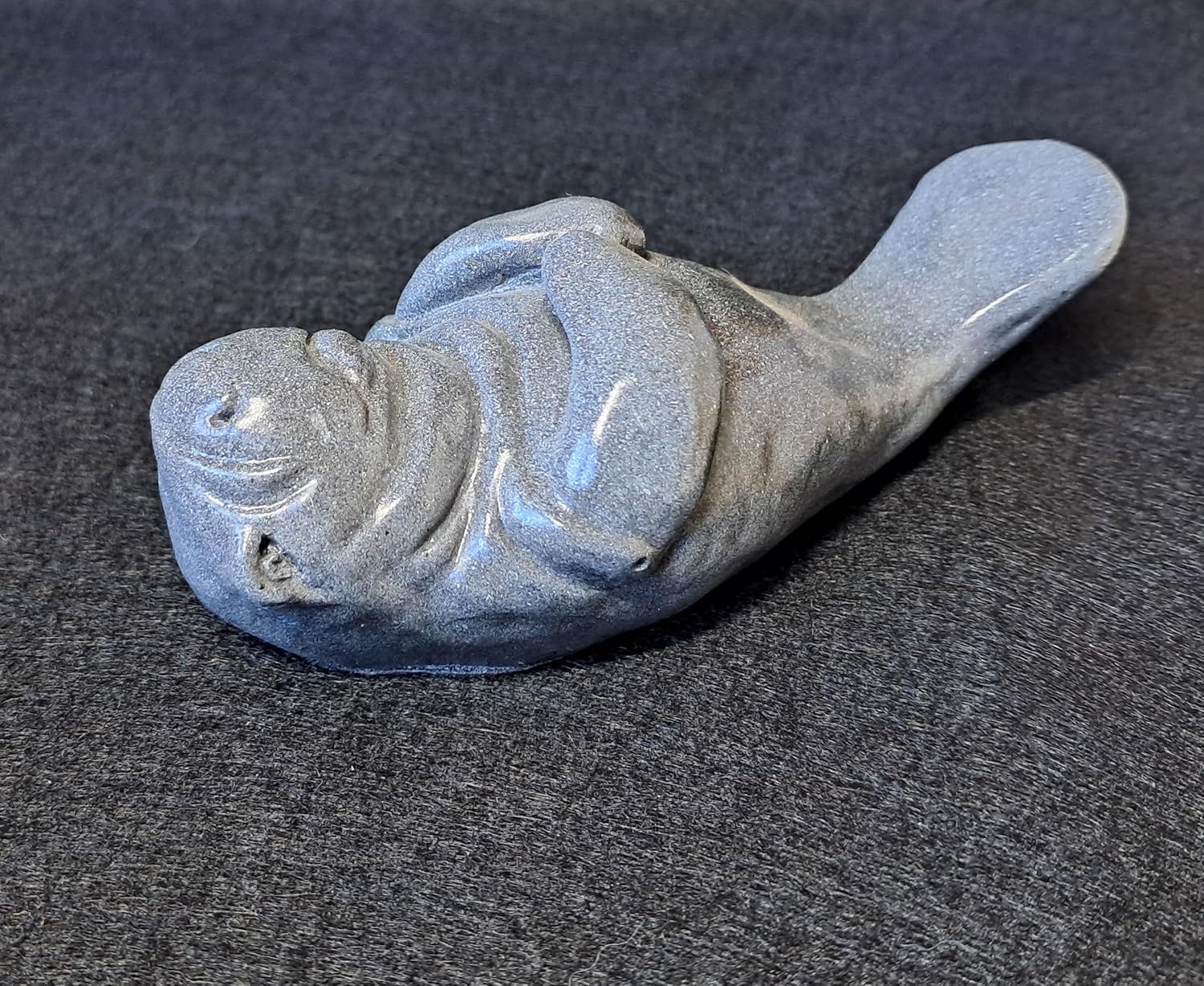 This sweet Manatee by Psychedelic Sushi Co. will add a touch of aquatic charm to your space with this beautifully handcrafted sculpture. This decorative figurine captures the gentle essence of these beloved marine mammals with its smooth, rounded form and endearing features. Crafted with meticulous attention to detail, the sculpture showcases the manatee's characteristic rotund body, flipper-like tail, and sweet expression. The piece features a sophisticated gray finish that gives it a sleek, contemporary look while maintaining the natural appeal of these graceful creatures. Each sculpture is individually handmade, making every piece uniquely special. Perfect as a decorative accent for your home, office, or as a thoughtful gift for nature and marine life enthusiasts. This charming manatee figurine serves as both an artistic conversation piece and a celebration of these remarkable marine mammals. Display it on your shelf, desk, or mantel to bring a slice of underwater wonder into your living space.