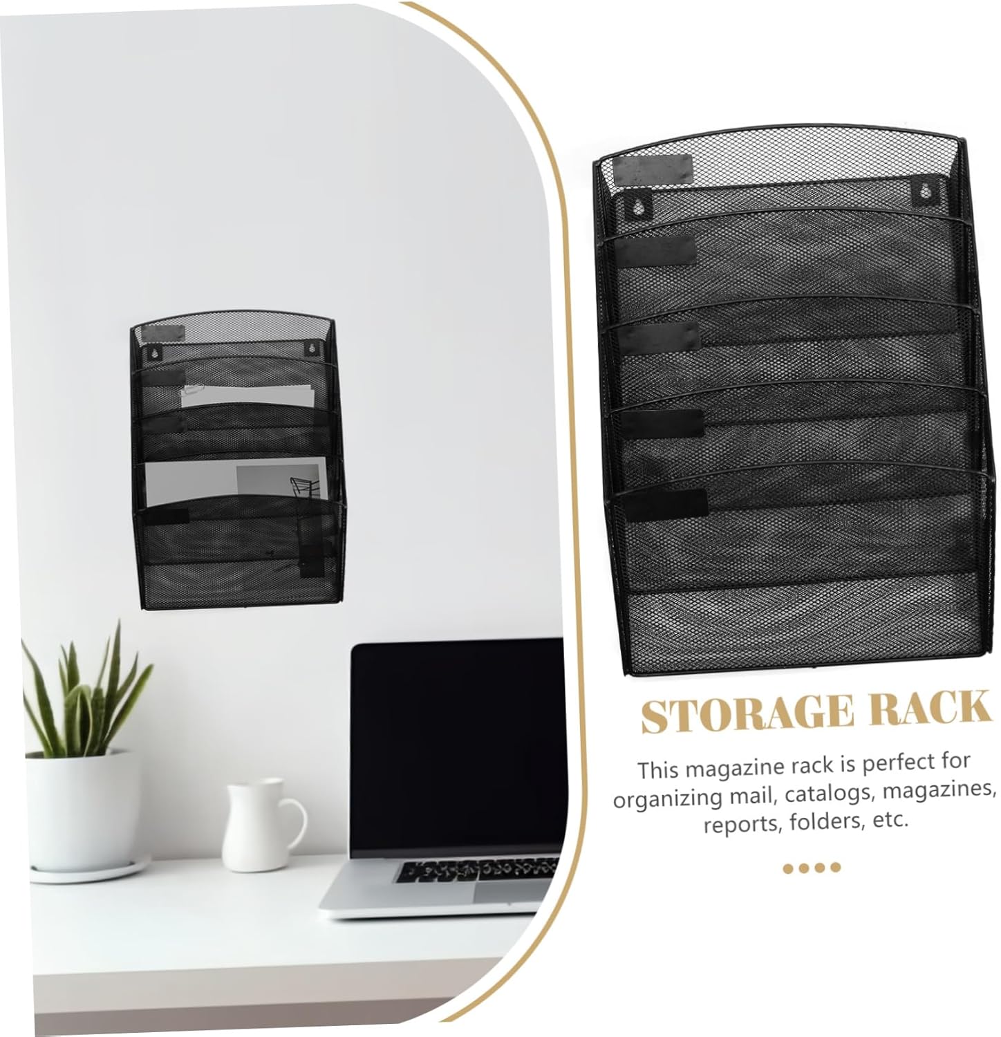Package List 1 x Wall File Holder 2 x Nails 2 x Hooks Characteristics -Material:Metal booklet display stand -Size:43.00X31.00X9.00cm/16.90X12.18X3.54in mesh magazine holder -Color:Black file display organizer - Bookshelf is very functional in terms of function, it keeps the documents in orderly manner and is easy for people to refer to magazine wall-mounted holder. - The structure of the bookshelf is and has little effect on the overall environment of the office desk pamphlets holder. - The design of the bookshelf is simple, and the position is flexible. You can use and move at will document stand. - The material of this kind of bookshelf is better and , and it file folder. - This kind of bookshelf has fine workmanship, a stable base, and is not easy to fall off pamphlets stand.Goods Informationfile holder The hollowed mesh design and the material is .file stands want a office bookshelf? There is a wall-mounted file storage rack, which is very convenient for people to use.magazine stand The multi-use bookshelf can organize your books or other items.document stand The appearance design is simple and generous