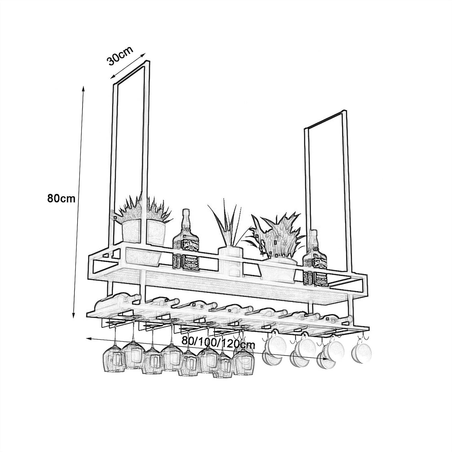 Feature: Ceiling Wine Rack/Ceiling Hanging: Modern style iron ceiling wine rack, suitable for bar, dining room, living room, kitchen, bedroom, study, cafe or wine cellar, can also be used as home decoration. Excellent storage shelf saves space and is a great container, with attractive colors and chic design that will make your room the focal point. Product details: Product name: flower stand / bottle stand / ceiling stand Material: iron + pine Product weight: 11kg / 24lbs, 13kg / 29lbs, 17kg / 38lbs Product maximum load: 100kg / 220lbs Packing: iron frame, pine board, screws and other accessories Size: 80*30*80cm, 100*30*80cm, 120*30*80cm Notice: 1. This package contains only this product and does not contain any decorative items related to pictures 2. The products are taken in kind, but there may be differences due to light, equipment, viewing angle and computer resolution, actual objects and photos, etc., the actual object shall prevail, and the pictures are for reference only