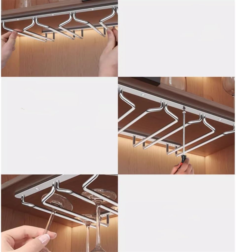 304 stainless steelMultiple options available.Solid Bold ThickCarrying a weight of 50 pounds.and sturdy.Material: stainless steelSpecification: 6 cup holder positions.Size: 9*2.8*5.5cmPackaging list:1 * Wine glass bracket (excluding display items)Attention:Due to factors such as monitor brightness and lighting, the actual color of the product may slightly differ from the images displayed on the website.2. There may be slight deviations in human body measurement data.3. The pictures are for reference only, subject to actual shipment.The cup holder is firm and reliable, with fine workmanship and stable standing.