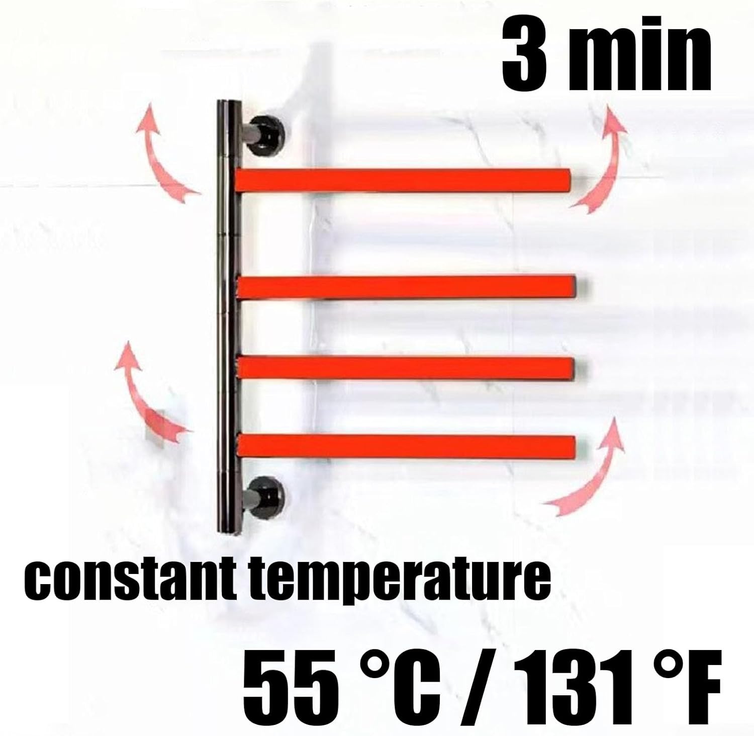 Product name: Constant temperature intelligent electric heated towel rack wall-mounted drying stainless steel bathroom toilet storage towel rackMaterial: stainless steelSpecifications: plug-in, hard wiringSurface treatment: spray paintProduct power: 50WTemperature: 55 °C / 131 °FHeating method: carbon fiber heatingPower cord: 1.3MScope of application: bathroom, kitchen, balcony, toilet, swimming pool, hotel and other places, simple design, multi-functional usePackage content:1* Towel heater1* Installation accessoriesNote:1.Due to manual measurement, the size error is 1-3cm. Errors may occur, please refer to the actual product.2. Due to monitor settings and lighting conditions, the color may be slightly different from the listed photos