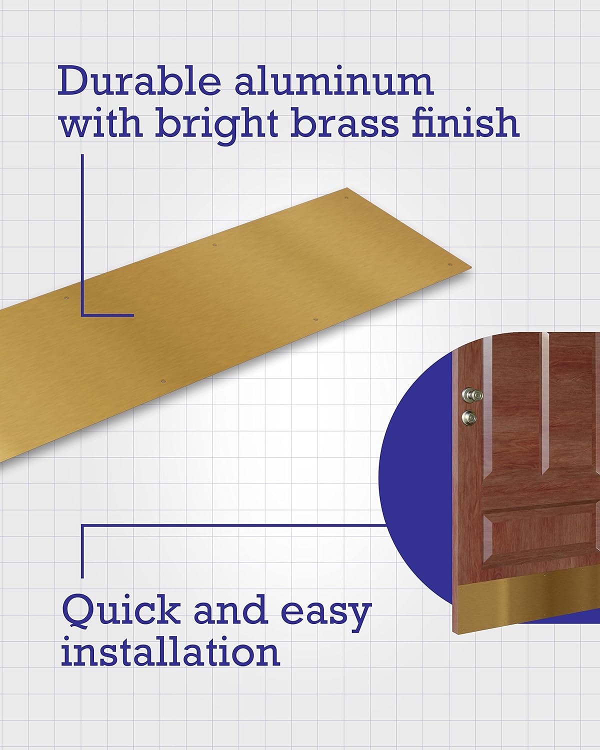 From the Manufacturer Kick Plates are designed to add a premium look and to protect the finish on metal or wood interior or exterior door. They come with pre-drilled mounting holes and stainless steel fasteners for a quick and easy installation. There is a plastic cover to protect the finish during installation. Made of solid brass for visual appeal and corrosion resistance.