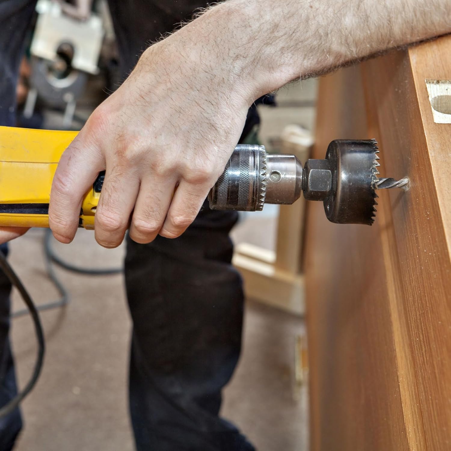 Features: metal hole saw kit is made of carbide, which has the characteristic of high hardness, wear resistance, good toughness, heat and corrosion.The center drill bit and spring-loaded guide ensure precision and control, suitable for cutting holes for pipes, and creating openings for cables and wiring.Special angle three-layer cutting edge design can drill fast and efficiently, providing efficient cutting performance on a variety of materials.Great to drill on a variety of materials, including stainless steel, mild steel, iron, copper, aluminum, FRP, plastic and thin brass sheets.Metal hole saw set can be installed on hand drills, cordless drill, impact drills and bench drills.Note: Please add coolant when drilling continuously at high speed, drilling on stainless steel, or a steel sheet thicker than 5mm.
