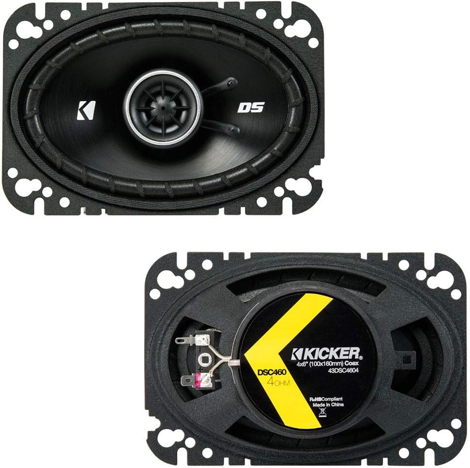 This Package Includes the Following Items:1 x Kicker 43DSC4604 4"x6" DS Series 25W RMS 4 Ohm Coaxial Car Audio Speakers DSC461 x Harmony Audio HA-SDSK Car Truck SUV Sound Damping Dampening Deadening (2) Mat 10" x 10" Sheets Speaker Install KitKicker 43DSC4604 4"x6" DS Series 25W RMS 4 Ohm Coaxial Car Audio Speakers DSC46:Woofers: 4x6"Midranges: n/aTweeters: 1/2"Impedance : 4 ohmsMax rec. Amp power: 50W PEAKMax rec. Amp power: 6-25W RMSSensitivity: 88dbFreq. Response: 50-20k hzMounting depth: 1-7/8"Mounting diameter: 4x6"Grilles: noHarmony Audio HA-SDSK Car Truck SUV Sound Damping Dampening Deadening (2) Mat 10" x 10" Sheets Speaker Install Kit:Specifications: Speaker Kit Includes 2 Sheets (Each Sheet 10" x 10") Black Foil with 70 MIL Rubber Butyl LayerSelf Adhesive Peel, Stick and Roll Finish Heat Resistant up to 200 DegreesEliminates Road Noise, Vibrations and RattlesInstall Tips: Remove the speakers from the door panels and clean the metal surface make sure is dry before startingTake the 1st sheet and place it with the speaker hole in the center of the sheet, press into place firmly Cutout the speaker hole using a razor blade and remove the excess material, cutout holes for mounting screwsInstall the speaker into the mounting hole and secure, then repeat for the opposite door panel