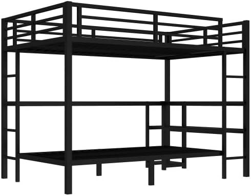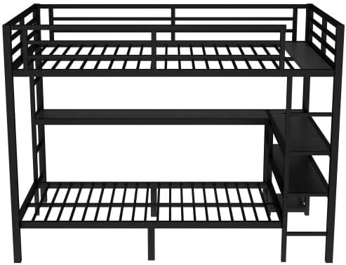 Metal Bunk Bed with Desk and Shelves, Full Over Twin Bunk Bed Frame with LED and USB, Multiple PlacementThe bunk bed has a storage panel on the upper bed for storage. The lower bed is designed with a desk and shelves with LED lights and USB. it makes full use of the three-dimensional space and can be placed in a variety of ways, either by placing the bed on the outside, reversing the bed and placing it on the inside, placing it vertically, accessing it from the end of the bed, designing stairs in different positions, and making it easy to get in and out of the bed either way.I believe that this metal twin over twin & twin bunk bed will bring you a different experience. Specifications:Product Type: Metal Bunk Bed Size: Full/Twin Color: Black Material: Metal Place of Origin: China Spring Box: No need Mattress Included: No Assembly Required: Yes Additional Tools Required: All Tools Included Weight & Dimensions:Product Dimension: 90.2"L x 57.5"W x 68.5"H Product Weight: 156.53 LBS Weight Capacity: 350 LBS for upper bed, 400 LBS for bottom bed Recommended Mattress Thickness: 6" for upper bed, 8" for bottom bed Package Number: 2 Notes:-Manual measurement has been used, there may be some reasonable error. -All the pictures are taken by actual samples, slight chromatic aberration may occur due to lighting or display.