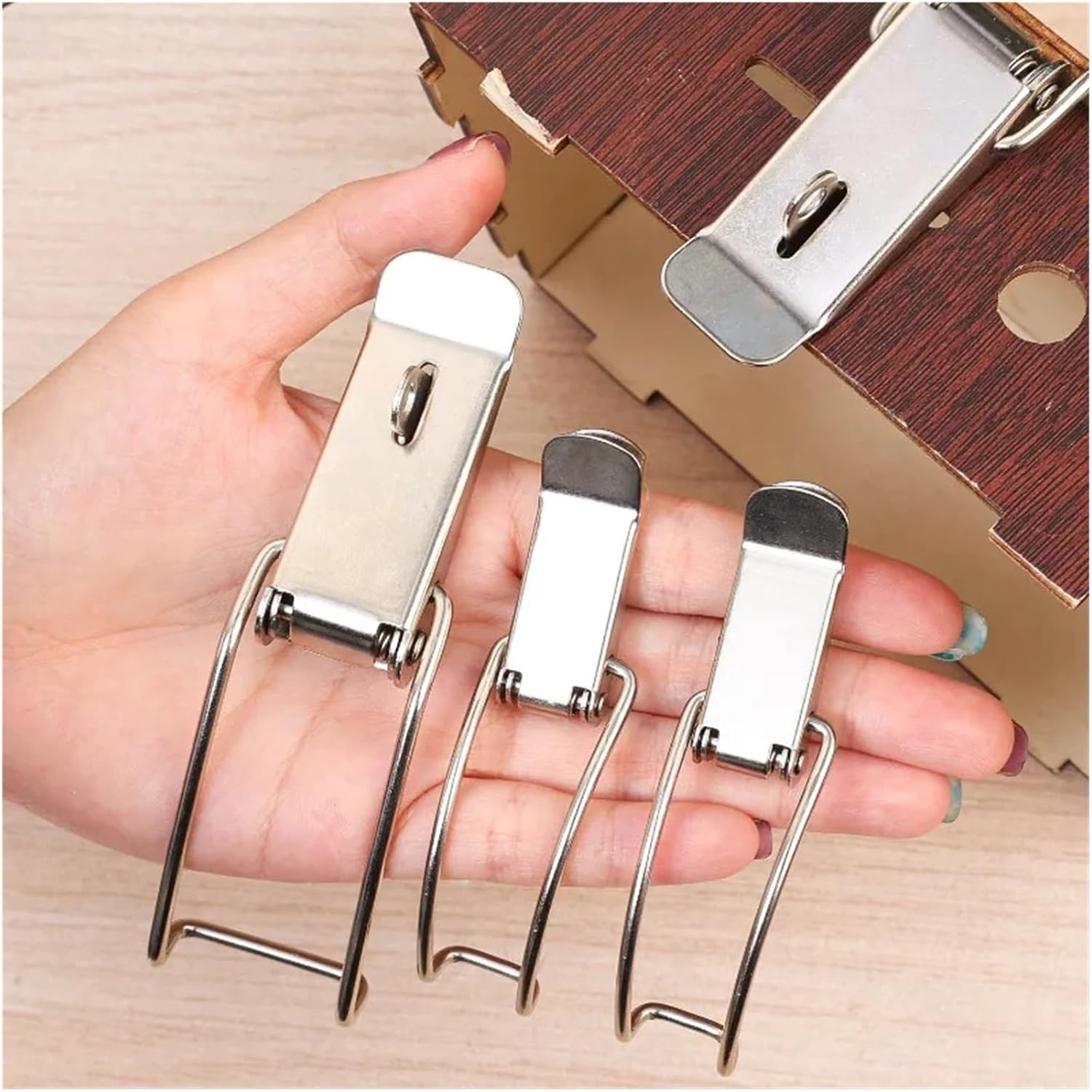 Spring Loaded Latch Catch Stainless Steel Fastening Clasp Cabinet Wooden Box Buckle Home Hardware Furniture Accessory WholesaleMaterial : Iron/Stainless steelSize : Small:8.7*1.86cm, Large: 11.92*3.5cmColor : Steel color