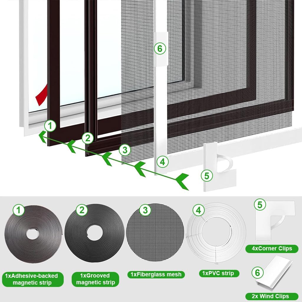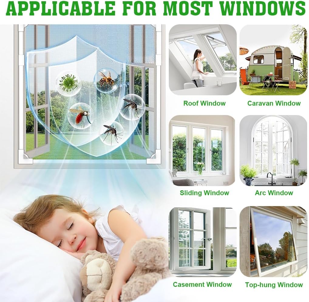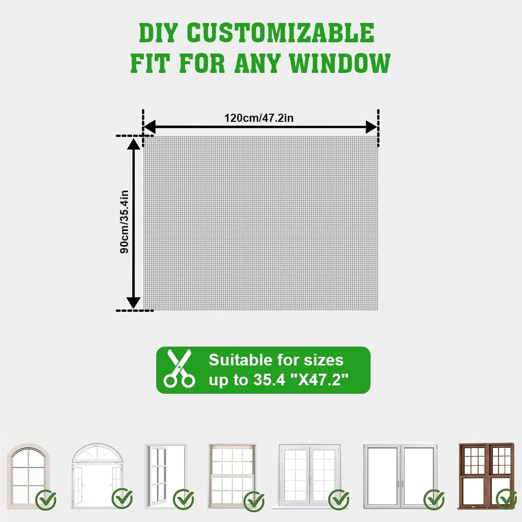 Magnetic Window Screen 90×120cm, Ventilated Fine Mesh Mosquito Net with Adhesive Magnetic Frame, Trim-to-Fit Removable Window Fly Screen for Home, Kitchen & Bedroom