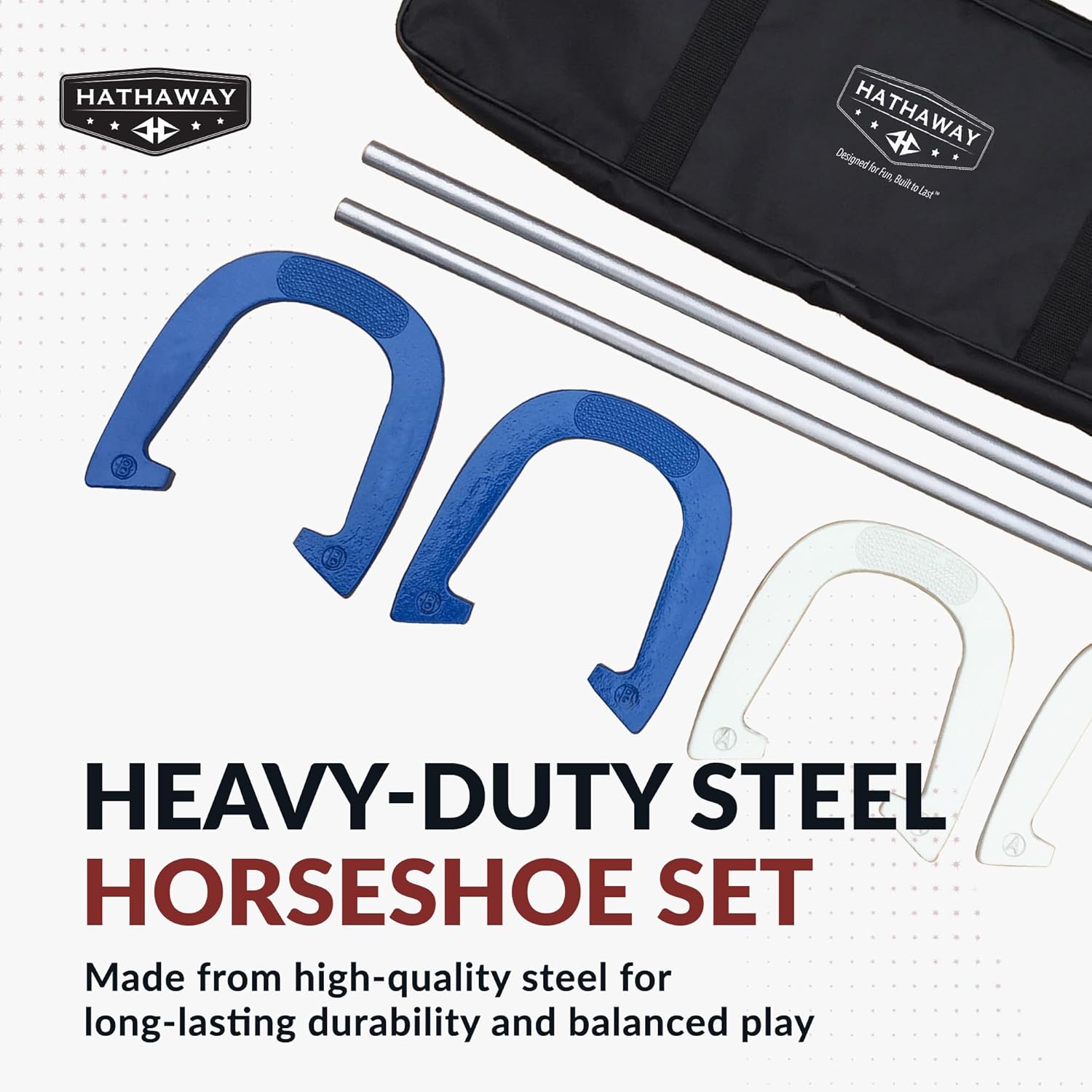 This heavy duty horseshoe set is a must-have for classic backyard fun. It’s a complete horse shoes game kit with 4 solid steel horseshoes and 2 sturdy stakes—everything you need for an authentic horse shoe game set. Whether you're hosting a summer barbecue, heading to the beach, or planning a weekend camping trip, this horseshoe game set for outside is built to last and easy to bring along in the included carry bag. Perfect for all skill levels, this set doubles as a professional horseshoe set and a fun horse game for casual players. These steel horseshoe sets offer better balance and control. It’s a great fit for those looking for horse shoes backyard game for adults, a fun outdoor games horseshoes experience, or even a beach horseshoe set. From competitive games to relaxed get-togethers, this horseshoe set outdoor delivers. It's a great horseshoes outside game and a fun pick for anyone searching for horse shoes for game night, parties, or lawn games. This metal horseshoe game set for adults is perfect for real, durable outdoor action with friends and family.
