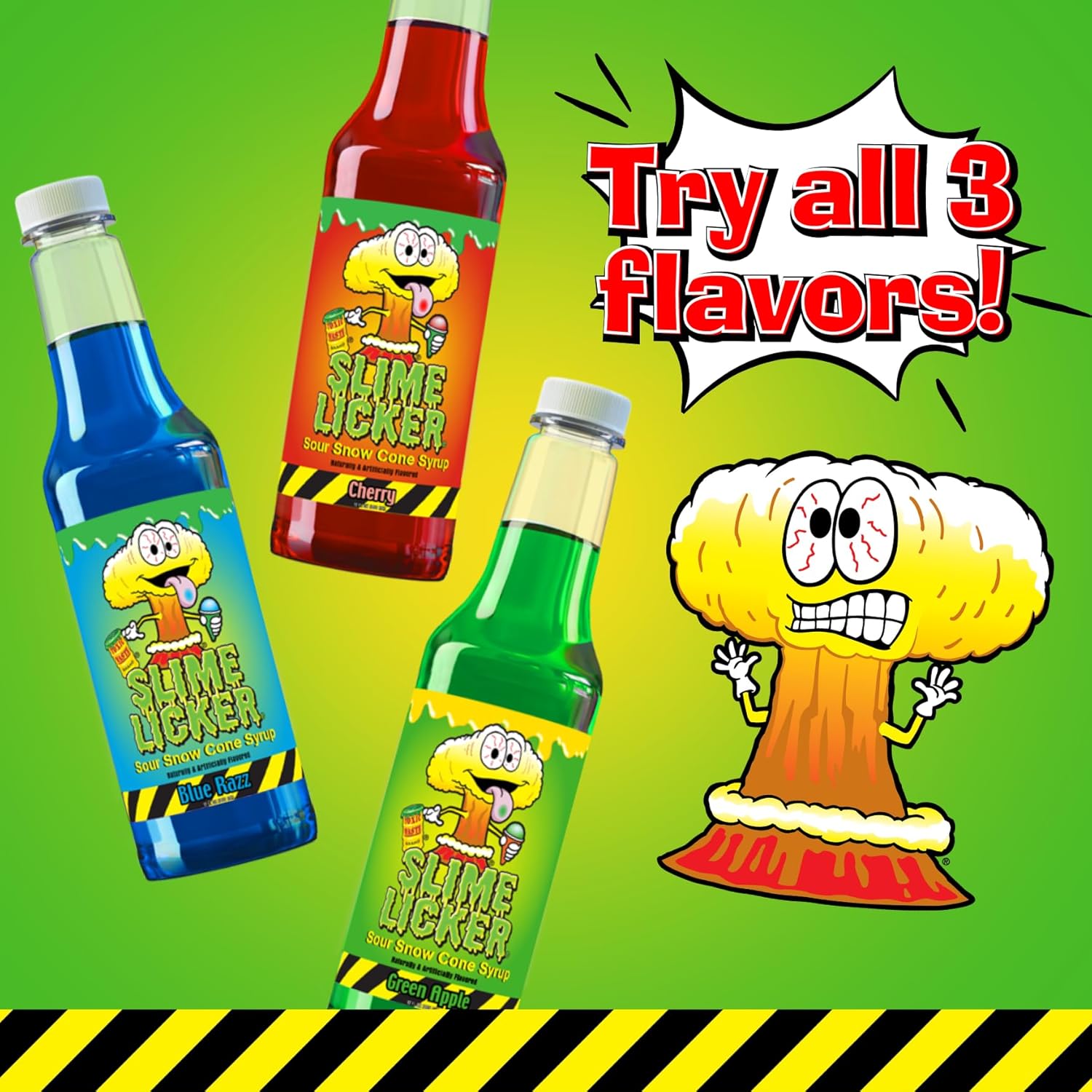 Sour lovers, get ready—this TOXIC WASTE Mini Snow Cone Machine Bundle featuring Green Apple Sour Syrup delivers bold flavor and hands-on fun in one compact package! The manual snow cone maker from Hawaiian Shaved Ice is easy to use, kid-friendly, and requires no electricity—making it perfect for any location or occasion. Paired with a 12 oz bottle of TOXIC WASTE Green Apple Sour Syrup, you’ll get up to 6 servings of zesty, tart, and totally delicious flavor. The syrup is made in the USA and free from common allergens like nuts, soy, and dairy. With ice cups and a sheet of playful DIY stickers included, this bundle brings creativity, taste, and fun to your next treat time.