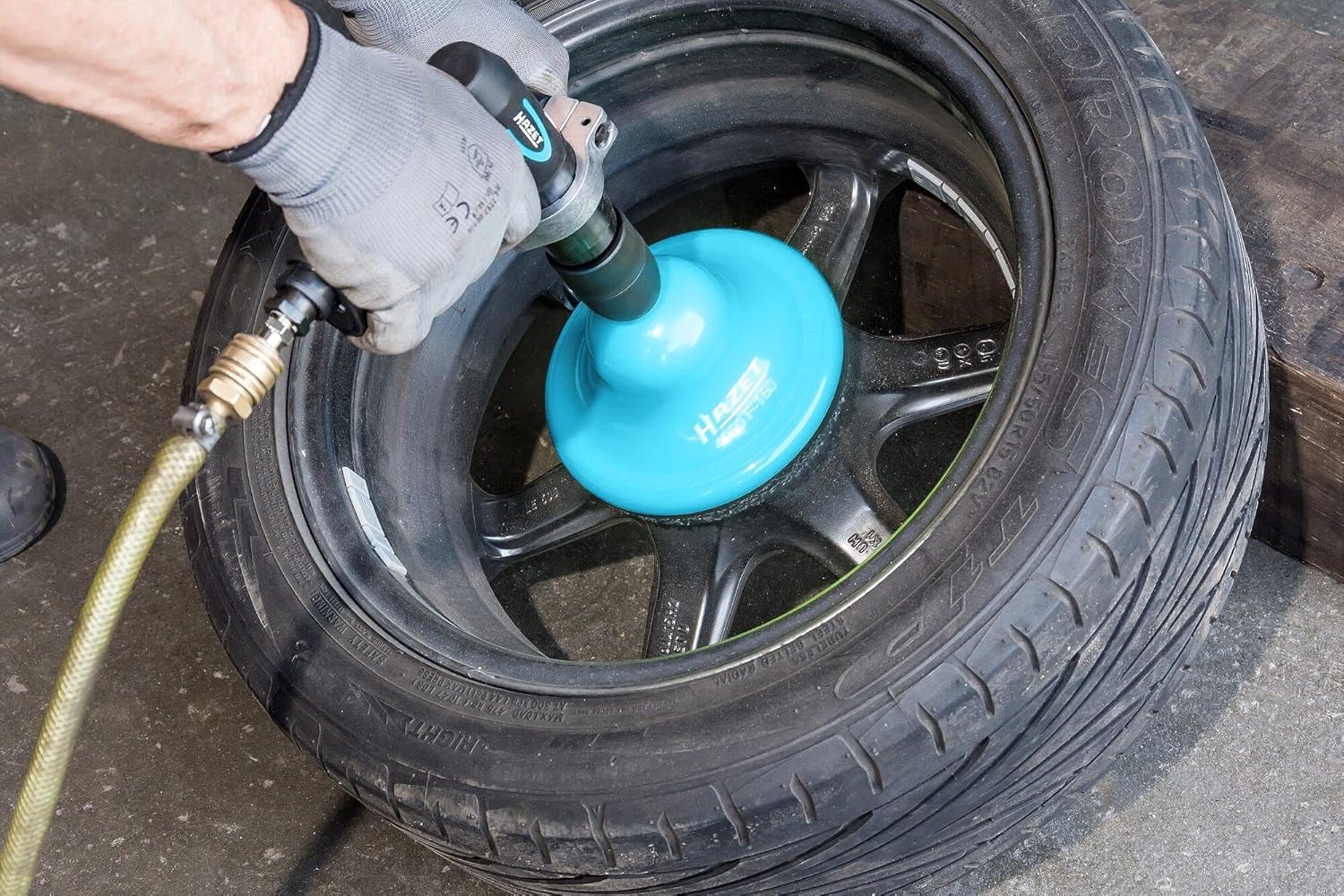 Application: optimal cleaning of the attachment surface of the rim interior prevents corrosion-related distortion of the wheel tightening torques. Cleaning the contact surfaces before balancing ensures correct results. Outer diameter up to 160 mm ∅ For wheel centering diameter: min. 51 mm speed max. 500 rpm 2-piece set contents: 1 base body 1 grinding disc diameter 160 mm 11 mm external hex socket with 3 attachment surfaces for attaching e.g. on pneumatic, battery and network-bound drills with centre hole guide and integrated grinder for cleaning wheel centres Low wear : approx. 100 vehicles per disc Minimal dust development due to open-pore abrasive and pod-shaped grinding disc. No sparks. Number of tools: 2.