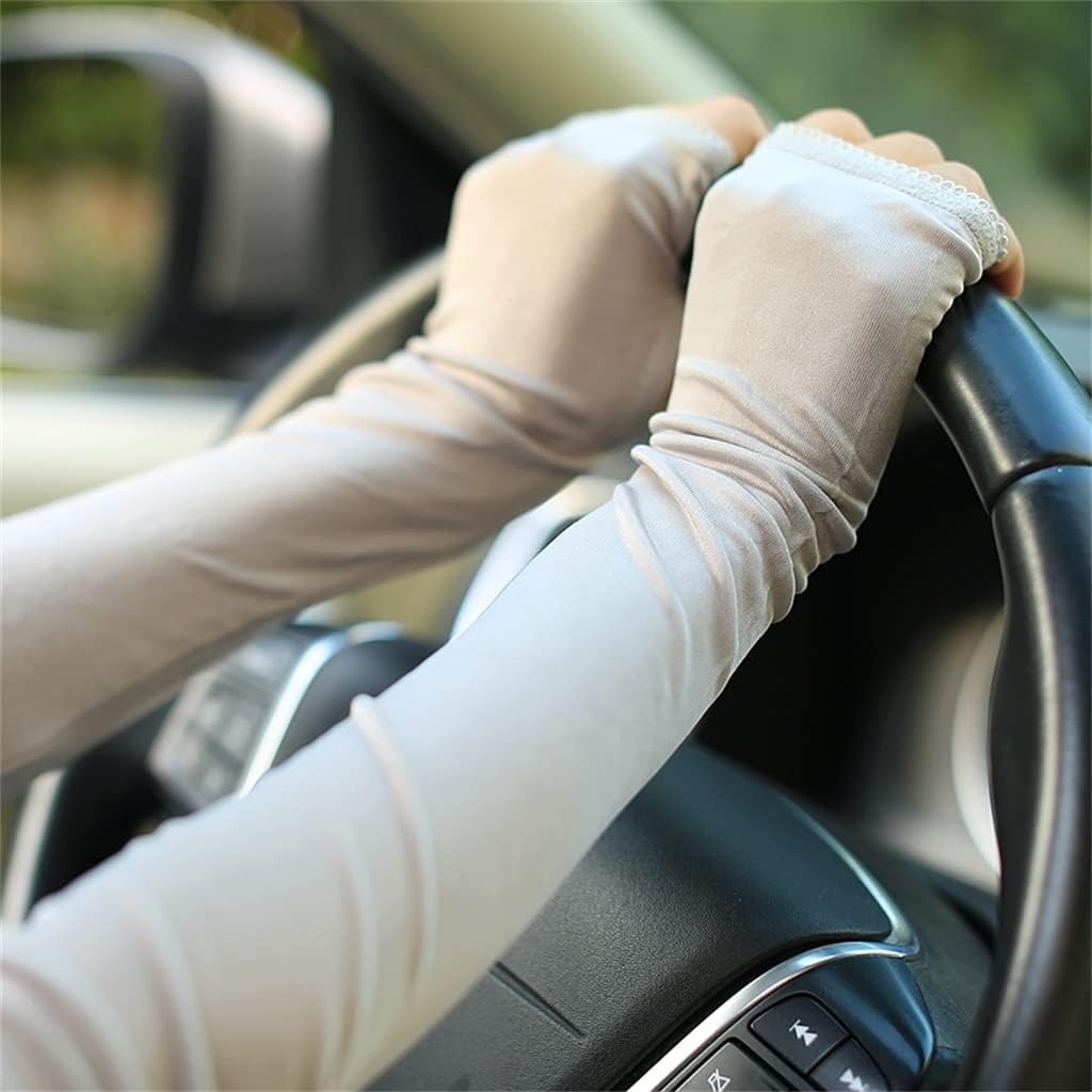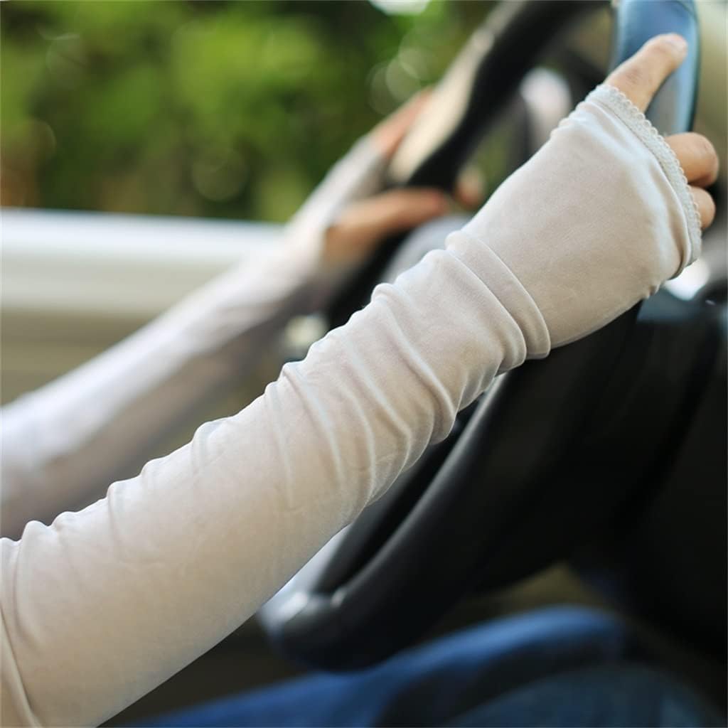 Soft and skin-friendly silk material, light and breathable,Not restraining the hand can better modify the arm line.Lace elastic cuffs, anti-shedding, a good helper in Soft and skin-friendly, cool to wear in hot , very comfortable and breathableThumb buckle design, prevent the gloves from slipping, practical and convenient, comfortable to wear.Material: silkSize: M, LM 60*16*21cmL59*19*26cmPackage includes: sun protection sleeve * 1 pair (does not include other demonstration items)Kind tips:1. Please allow 2-3cm error due to manual measurement.2. Due to different monitors, the color may be different, please understand.Instant cool, sweat-wicking and breathable to keep skin dry and not stuffy