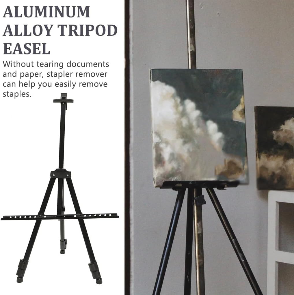 -Material:Aluminium alloy,PP,polyester-Size:143.00X60.00X8.00cm/56.20X23.58X3.14in-The product is for beginners, students, classrooms, parties, and painting classes.-With the creative design, you can use it hold your painting tools while painting.-Height can be adjusted to suit your different painting s, very practical.-The material is very sturdy, foldable, convenient for transportation outdoor use, to carry.-When you need to use them in a way for a long time, the product will quickly become your good helper.1 x EaselWarm reminderThe color of the picture may be different from the actual color of the product due to light. Please understand that the color of the product is subject to the actual object.Due to manual measurement, there may be an error of 2-3 cm in the sizeIt can be used as a desk/table Easel, display stand for painting work and advertisement.