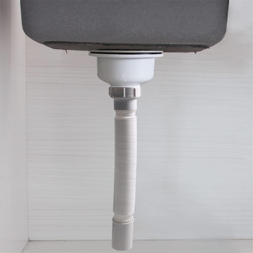 It can be used for a long time and is not easy to split.Flexible and stretchable design that can be adjusted to different shapes.Fixing alignment or other plumbing issues can adjust bathroom sink drain extensions.Large enough to drain quickly without clogging easily.The rubber connection fits tightly to the sink outlet without leaking.Size: side connect Thread G1 1/2",(thread inner diameter is 45.2mm),Plastic pipe diameter 40MM.Length:Telescopic Pipe length from 300MM-700MMNote:Due to the light and screen setting difference, the item's color may be slightly different from the pictures.Please allow slight dimension difference due to different manual measurement.Quantity :1pcsLarge enough to drain quickly without clogging easily.