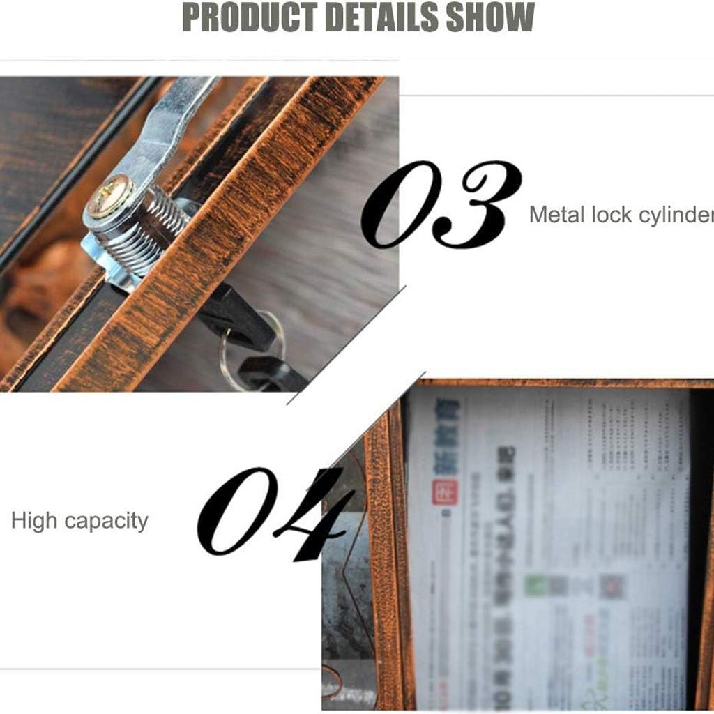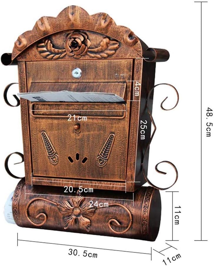 Color classification: bronzeMaterial: Galvanized SheetNet Weight: 4kgOverall Size: 30.5x11x48.5cmLetter Slot: 21 x 4cm constructed retro .Lockable with 2 keys included, easy installation.It can be used both indoors and outdoors.
