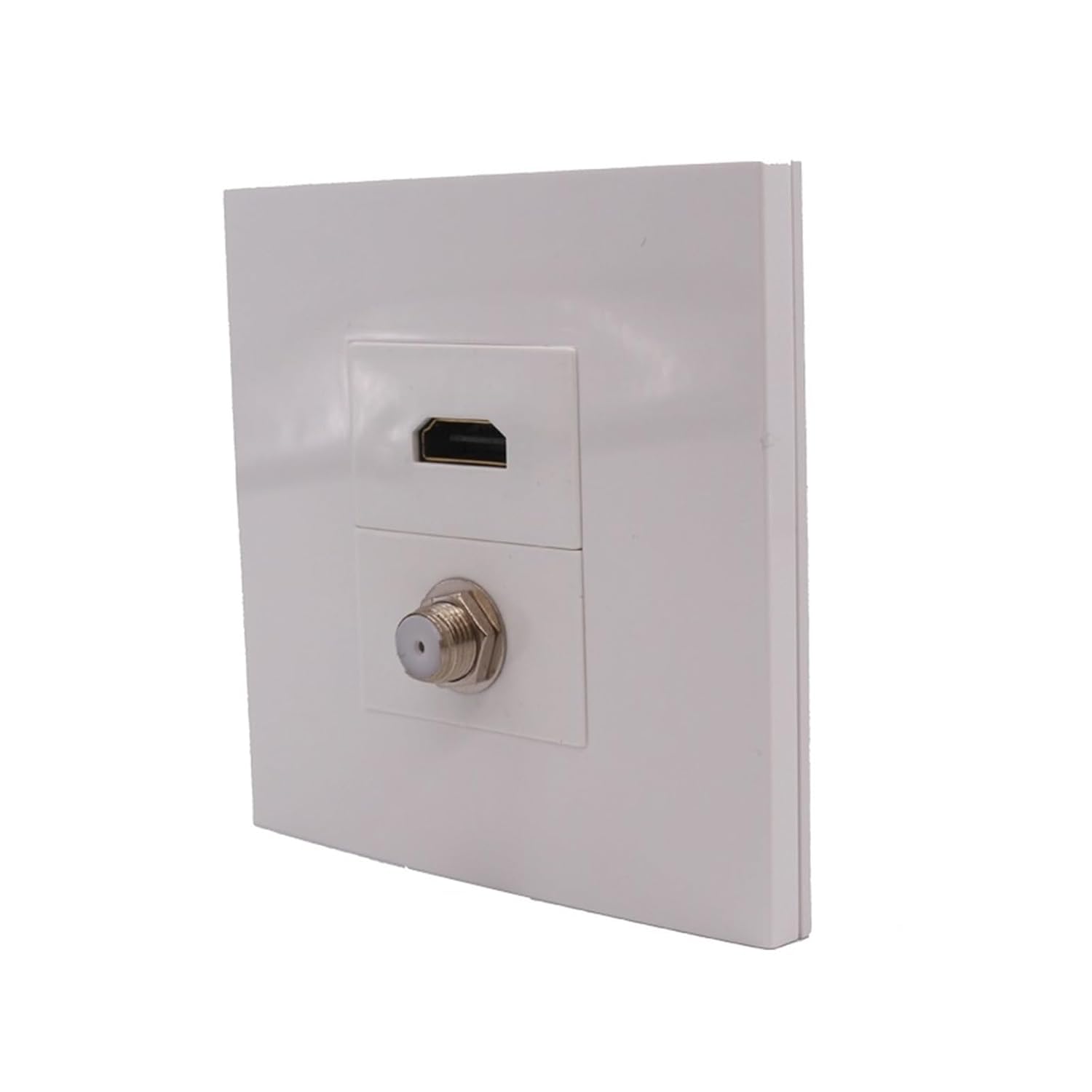 Cat 5 CablesColor: WhitePort: Digital TV + HDMI- HDMI version: 2.0Dimensions: 86x86mm.Screw hole distance: 60mmPanel material: plasticEasy to install and connectInstallation method: wall mountedPanel material: smooth/resistive PCSize: 86x86mmScrew hole distance: 60mmPort: HDMI+F-head TV