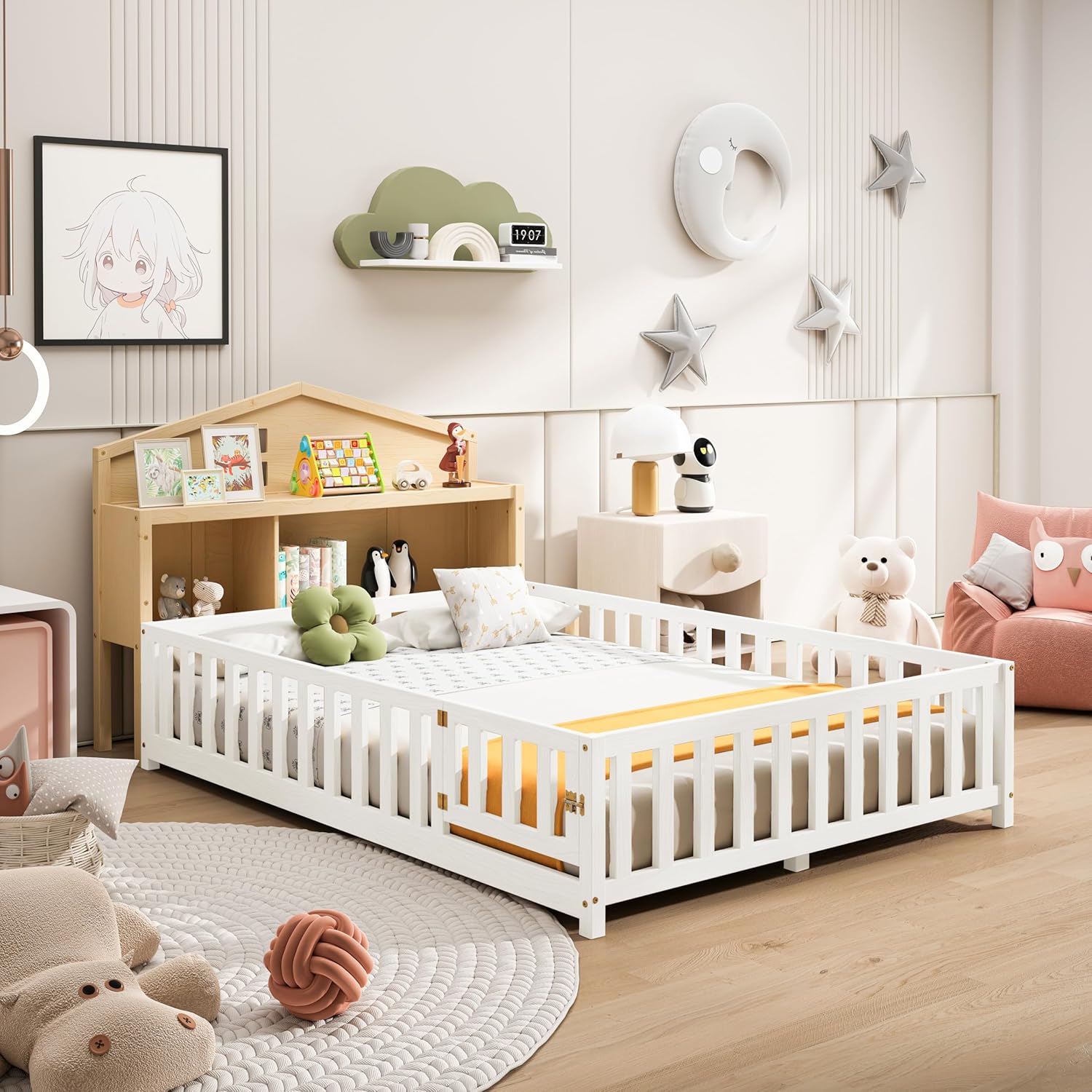 Product Features 1. PRACTICAL NIGHT STAND: The multifunctional bookcase attached to the bed contains different compartments for decorating and storing books, toys, lamps and other accessories. 2. High Quality Material: The bedside frame is made of high quality plywood, pine wood and high quality density board, the wood structure is strong and securely fixed, all parts are reinforced with each other to ensure durability, the bedside frame can bear 50lbs. 3. FUN AND SAFE DESIGN: There is a chalkboard on the back of the headboard, you can doodle according to your imagination and preference. The headboard can also be freely matched with bed frames of different colors in the same series. 4. EASY TO ASSEMBLE: The bed comes in a one-piece package with an installation manual and all necessary hardware for quick and easy assembly. Description Notice: The products in this link only include the headboard portion of the bed, the bed frame is for matching display only. Notification: 1. Due to lighting or monitor display, the color of the real product may be slightly different from the image. 2. Manual measurement has been used, and there may be some reasonable errors.