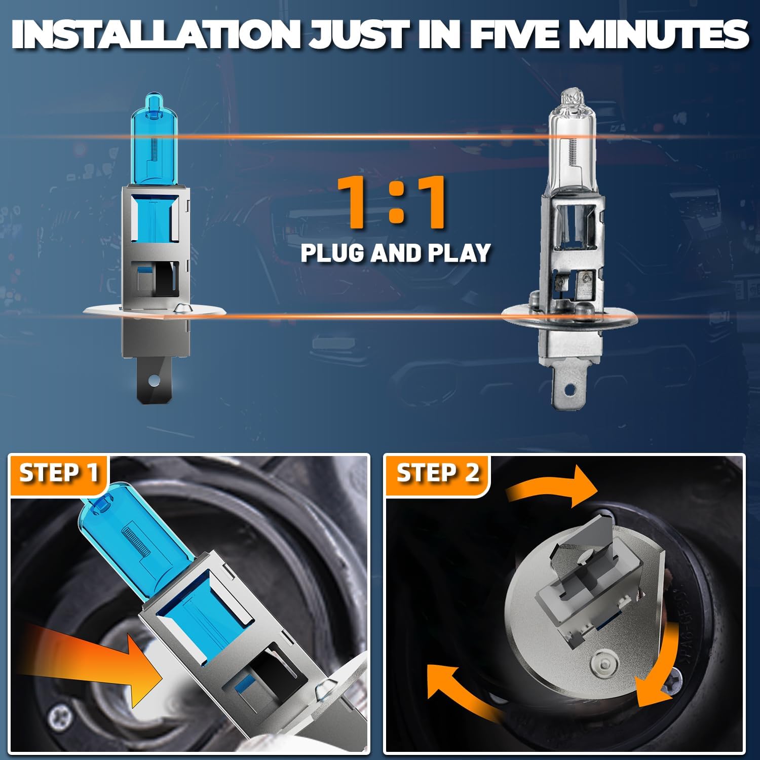 | Included Components | 2 PCS H1 High Beam Halogen Bulbs; 2 PCS H7 Low Beam Halogen Bulbs;2 PCS 9006 Halogen Fog Lights; 2 PCS License Plate Lights Halogen Fog Lights |