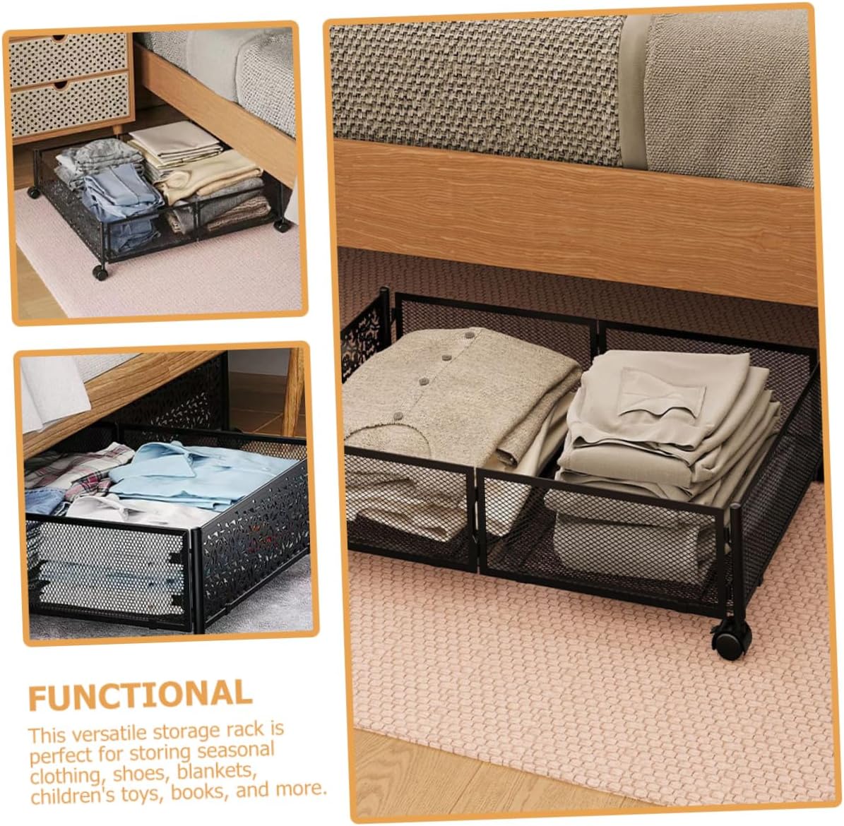 Package Include 1 x under bed storage Features -Material:Stainless steel, plastic storage under bed -Size:62.60X42.30X15.80cm/24.60X16.62X6.21in drawers for under bed -Color:Black large under bed storage - The sleek and modern design adds a touch of style to any bedroom or living space under bed storage containers with wheels. - The metal mesh structure allows for easy identification of stored items, even when stored space saving storage. - This foldable under-bed storage rack is made of stainless steel and features a sturdy metal mesh structure for increased capacity bed storage organizer. - Unlike flimsy fabric or plastic under-bed storage containers, this metal storage rack is built to last and can easily hold heavier items under bed clothes storage. - This versatile storage rack is for storing seasonal clothing, shoes, , 's , books, and more storage bin with wheels.Goods Descriptionunder bed storage with wheels Also can be a present choice for your friends, they will like it.bedroom storage It has a simple design, but very in use, giving you a using experience.large under bed storage Designed for home storage, this under bed organizer can help to keep your home organized.storage bin with wheels Made of sturdy material for long time and use