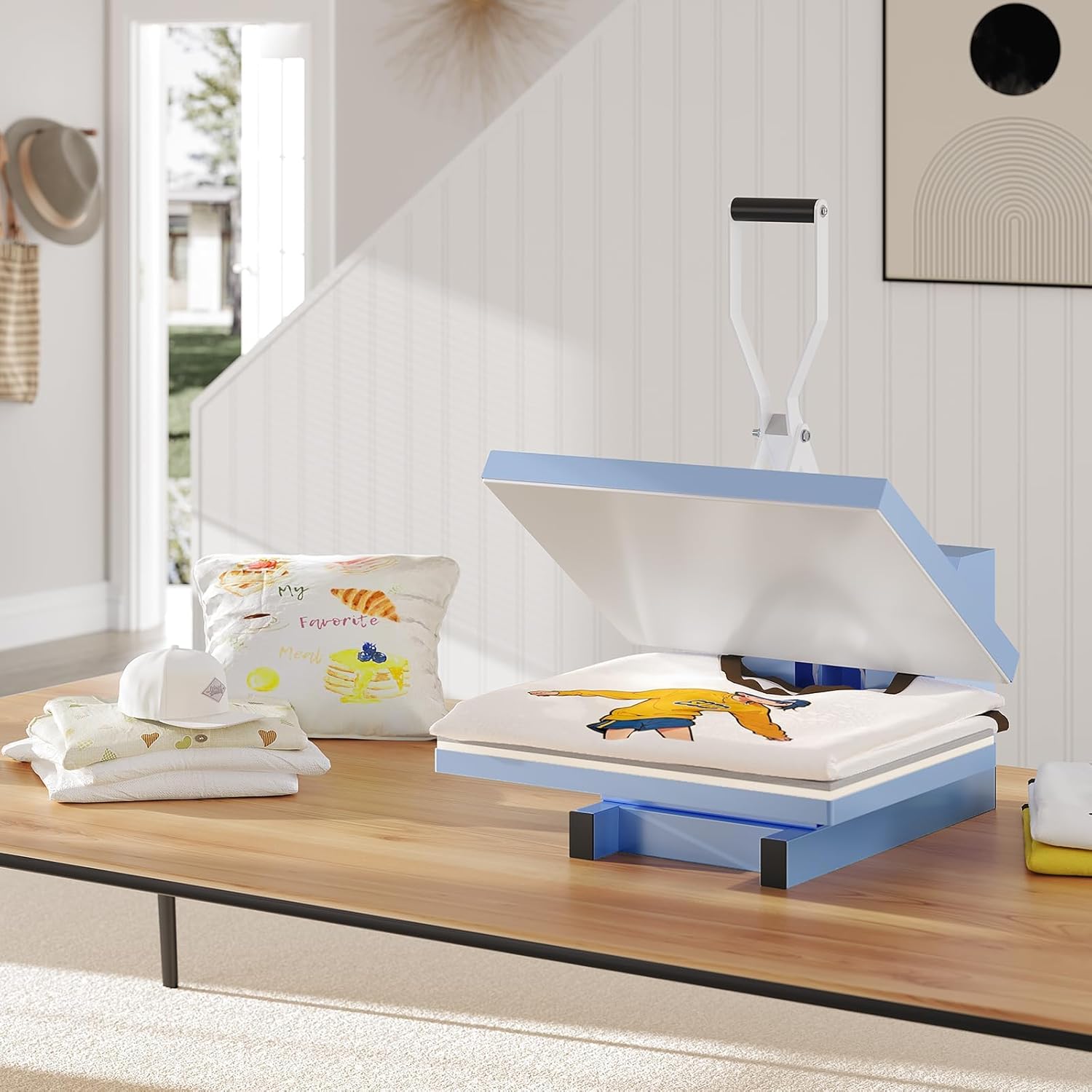 This 16x20 heat press machine is designed to support a wide range of heat transfer and sublimation projects for personal studios and small businesses. With a practical clamshell structure and compact footprint, it fits comfortably into home workshops, creative studios, and retail workspaces while allowing clear visibility during operation.Built with a reinforced steel frame, this heat press is intended for regular use and stable performance. The manual pressure adjustment makes it easier to work with different fabric thicknesses, such as T-shirts, hoodies, tote bags, mouse pads, pillows, and other flat items commonly used in heat transfer projects.The digital control panel provides separate displays for time and temperature, helping users set and monitor pressing conditions with clarity. A wide temperature range and flexible timer settings allow this heat press machine to be used for various heat transfer materials, including sublimation paper and HTV vinyl, based on project needs.An efficient heating system supports fast warm-up and even heat distribution across the platen. This helps reduce waiting time between projects and supports consistent results when working on repeated designs or small batch production.Designed with usability in mind, the clamshell layout takes up less space when opened and closed, making storage and daily operation more convenient. Whether used by beginners learning heat transfer techniques or experienced users managing custom apparel projects, this heat press machine offers a balanced combination of functionality, stability, and ease of use for everyday creative work.