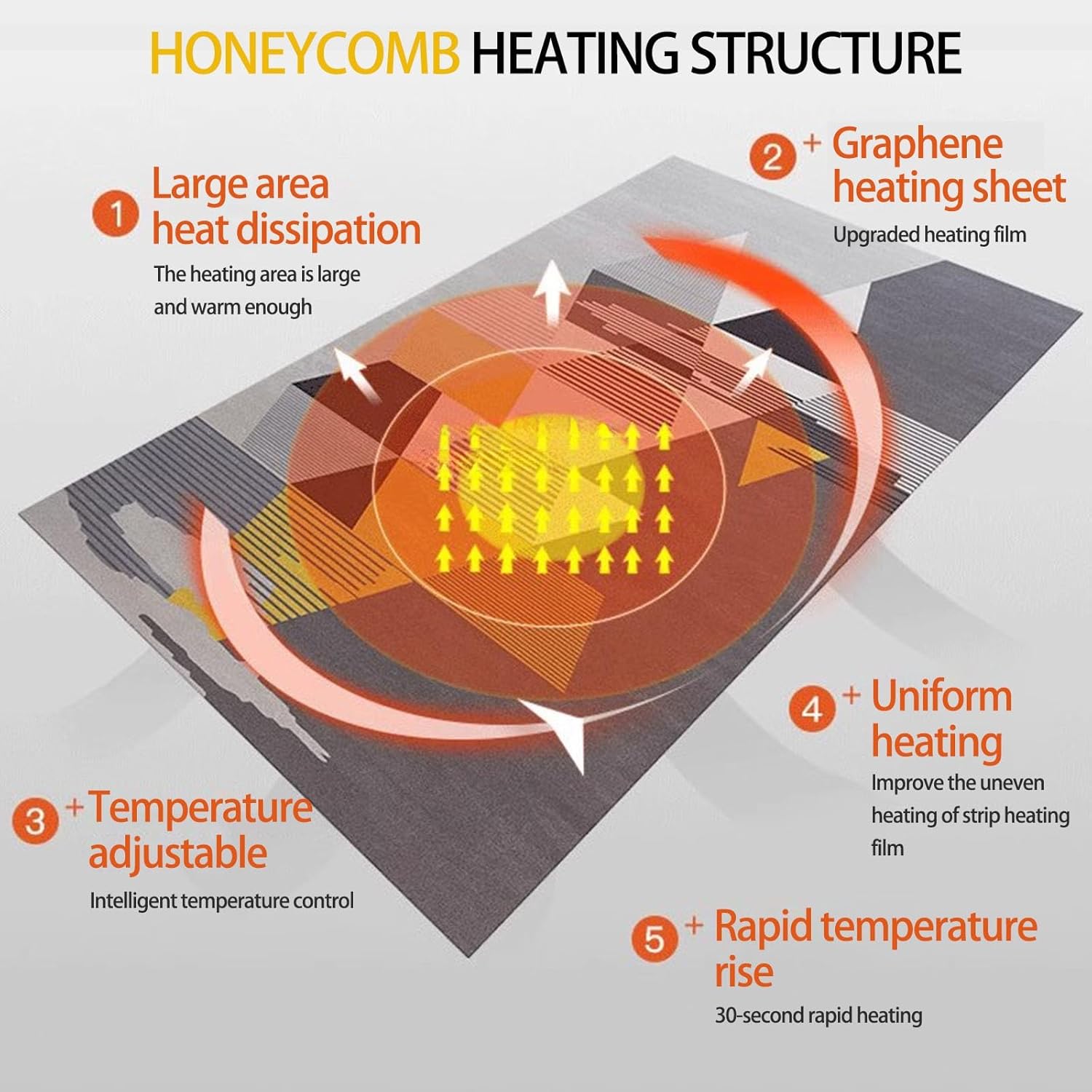 - No need to take off your shoes, just place your feet on the mat.- Made of graphene, it heats up quickly for a significant therapeutic effect.- The heating pad heats up instantly in 1-3 minutes, and the temperature is adjustable.- Waterproof design allows for easy cleaning with just a cloth.Specifications:Material: GrapheneVoltage: 220V 50HzPower: 60WElectric Blanket Levels: 60Heating Speed: 3-5 SecondsInstructions:1. Place the product face up on the ground and connect the power cord to the mat.2. Plug the power cord into an outlet and connect the power cord.3. Adjust the switch; it's recommended to set it to high for first-time use.4. Adjust the desired heating level. The mat will begin heating and you can enjoy the warmth.Package Included:1 x Electric Heating Foot Pad