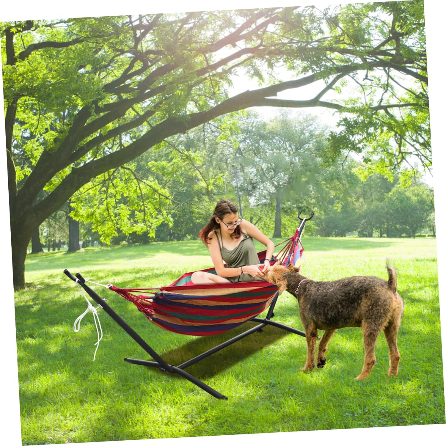 Package List 1 x hammock 1 x storage bag 1 x stand 1 x set of install fittings 1 x user manual 1 x packaging box Features -Relaxation solution: Suitable for indoor and outdoor use, this hammock with stand transforms any space into a cozy retreat. Ideal for patios, gardens, spacious rooms and more places outdoor hammocks. -Durable and comfortable: Crafted from sturdy canvas material, our standing hammock provides lasting comfort and resistance to hammock for stand. -Stable stand: This canvas hammock comes with a robust iron stand, offering strong stability and convenience. Set it up anywhere, anytime without relying on trees or posts canvas camping hammock. -Size:260.00X109.00X107.00cm/102.18X42.84X42.05in camping hamock -Portable convenience: Convenience meets leisure with a carrying bag, allowing you to easily pack up the hammock and stand. Transport and storage become effortless beach hammock. -Color:Multi hammock camping -Material:Canvas, iron hammock portable -Height adjustable: The camping hammock allows you to adjust the height according to your preference, providing tailored comfort for every user survival hammock.Goods Descriptionhammock travel camping hammock The Outdoor Hammock is a must-have for outdoor enthusiasts.hammock stand This comfortable hammock is perfect for outdoor camping and leisure activities.hammock camping With the included stand and storage bag, it is convenient to carry and store.camping hamock Its stylish and classic striped design adds a touch of fashion to your camping experience