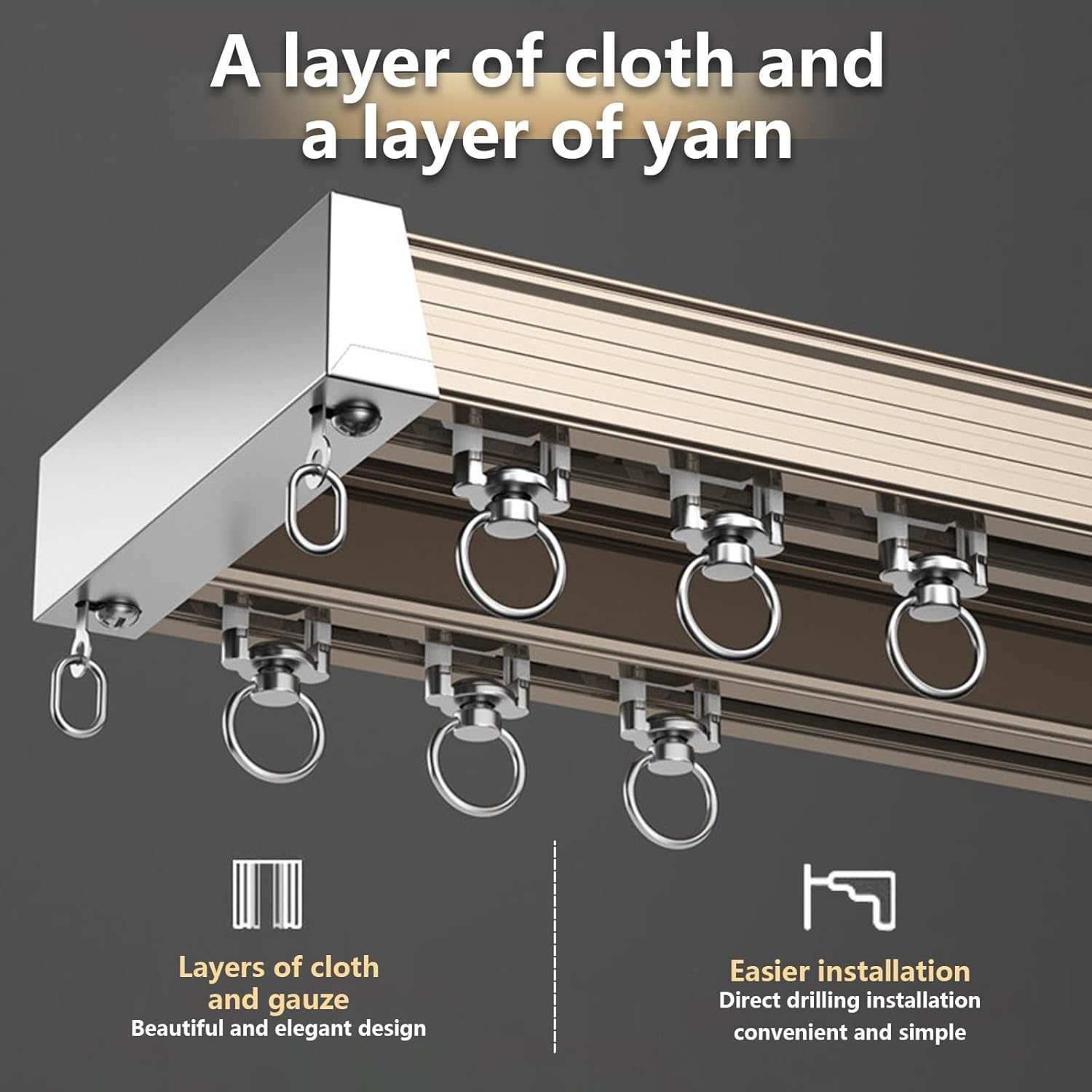 Introducing our Heavy-Duty Luxury Double-Track Curtain Track, the perfect blend of elegance and practicality for your home or business. Made from premium aluminum alloy, this curtain track features a smooth, electrophoretically treated surface that resists fading, providing a long-lasting aesthetic appeal.Designed for durability, our track includes high-quality alloy wheels and sturdy zinc alloy end caps, ensuring a seamless operation and extended lifespan. Whether you are enhancing a cozy living room, a sophisticated office, or a chic retail environment, this double-track system allows you to hang curtains effortlessly while adding a touch of style.Choose from two exquisite colors—White and Champagne—to perfectly match your decor. The widened and thickened construction provides exceptional stability, making it suitable for heavier drapes and layered curtain designs.Available in various lengths from 70 cm (2.30 ft) to 600 cm (19.6 ft), our curtain track accommodates a range of window sizes and installation requirements. For tracks over 1.50 m, each section comes with a track connector to ensure your curtains hang flawlessly and glide smoothly.Elevate your space with our Heavy-Duty Luxury Double-Track Curtain Track, where strength meets sophistication, making it an ideal choice for any setting.