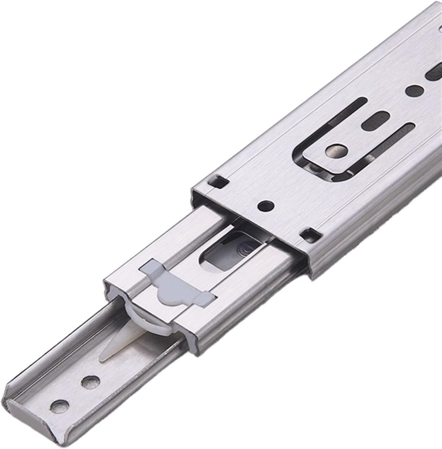1.Soft-close push-open drawer slides are designed to push open quietly and smoothly and close automatically.2.The slides are smooth and durable, and easy to install.3.drawer slides feature a full-extension design that opens completely for easy access.Ball bearing drawer slides2-piece, 3-fold smooth telescopic slidesGood closing mechanism performance adds a piston that draws the drawer slowly and closes quietlyApplication: Cabinets, table top bases and ordinary storage drawersColour: silverMaterial: steelPackage Contents:1 pair x 6inch drawer sliders