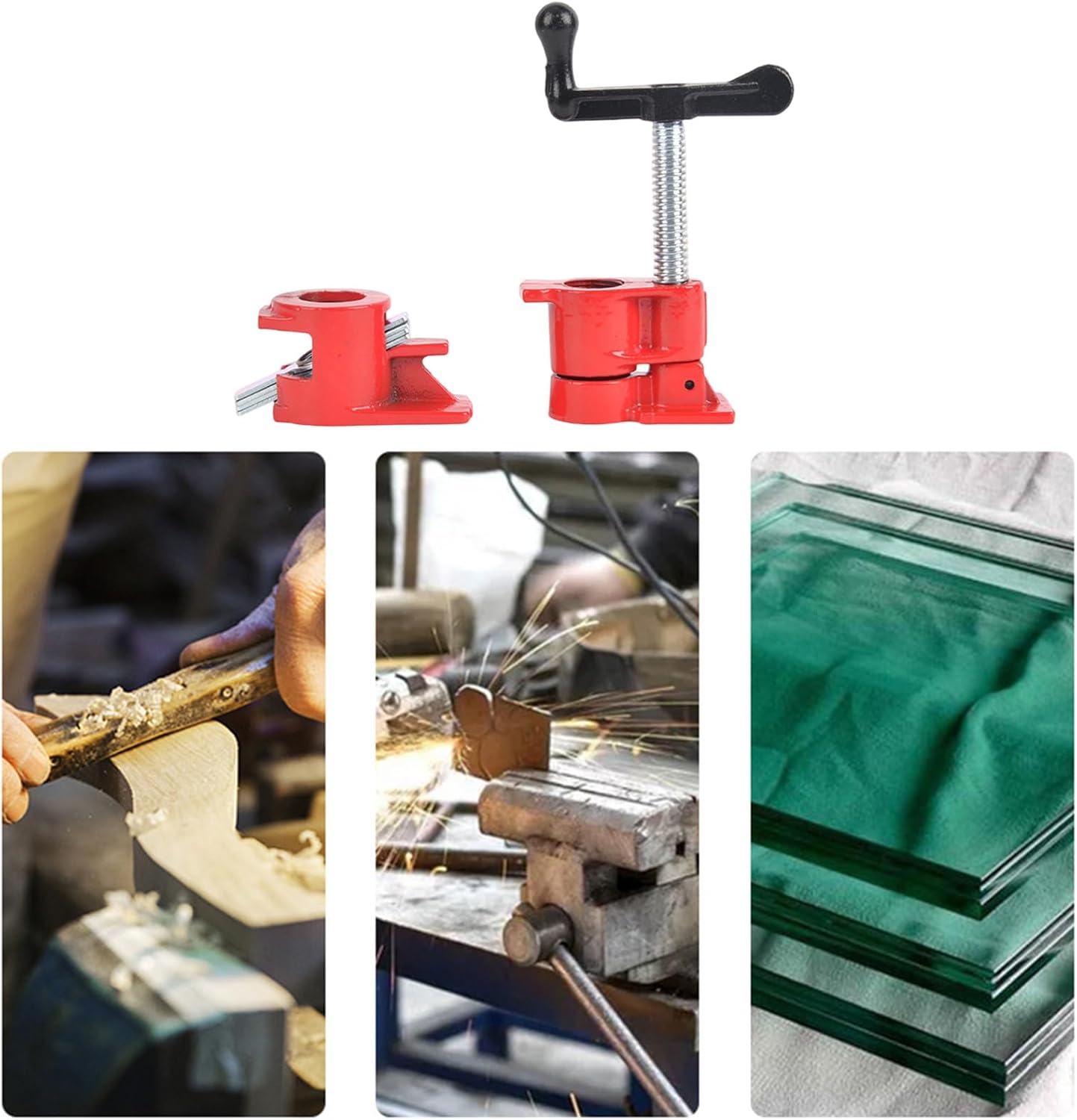 Heavy Duty Easy To Assemble Antislip Pipe Clamps Suitable For Efficient Woodworking Furniture Making Precise Wood GluingFeatures:The wood gluing pipe clamps are designed for heavy duty woodworking, ensuring your projects stay secure and precise during gluing with their robusts cast iron construction.Featuring a painted surfaces to rust and ergonomic handles for comfortable use, these clamps offer quick assembly with a spring levers control for easy adjustments and release.Ideal for professional carpenters, DIYer enthusiasts, and furniture makers, these pipe clamps cater to a wide ranges of woodworking skill levels.Perfect for various woodworking applications, from furniture making and wood repair to crafting, these clamps provide reliabled in both industrial settings and home workshops.These clamps ensures stability and efficiency, making it essential tool for any woodworking project.Specifications:Component:MasteelSize:Approx.4x6.8cm/1.57x2.68inchPackage Includes:1 Set Woodworking Pipe ClampsNote:1.Please allow 1-2cm errors due to manual measurement, make sure that you donot mind befores you order. 2.Due to the differences between different monitors, the picture may not reflect the actual coloring of the item.Thanks for your understandings.