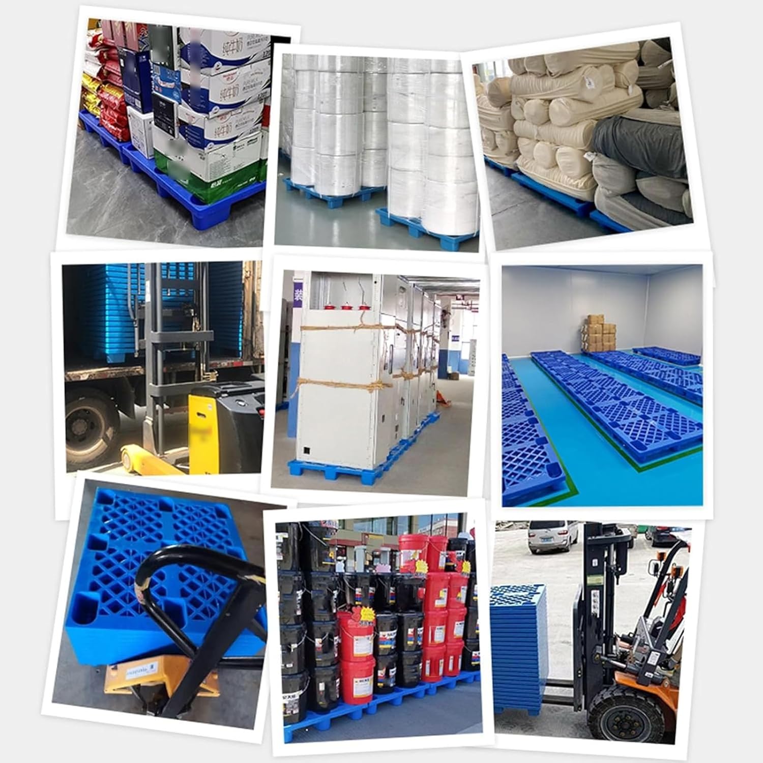 Our lightweight, high-quality plastic pallets are versatile and suitable for a variety of environments, including supermarkets, offices, laboratories, outdoor spaces, gas stations, pet stores, homes, industrial sites, agricultural sites, landscaping, balconies, campsites, and closets.AdvantagesThe hollow mesh design is effectively waterproof and breathable.The raised legs prevent water from pooling on the bottom of the pallet, keeping it dry.The non-slip surface prevents items from slipping and effectively protects your belongings.Easy to Clean: Simply rinse with water to remove stains and dust from your basement storage plastic pallet.Easy to Move: The pallet's well-designed bottom and lightweight design make it easy to move your items.SpecificationsName: Plastic PalletMaterial: High-Density PolyethyleneSizes: 80x60x14cm/31x24x5.5in, 80x80x14cm/31x31x5.5in, 90x90x14cm/35x35x5.5in, 100x80x14cm/40x31x5.5in, 100x90x14cm/40x35x5.5in, 110x80x14cm/43x31x5.5in, 110x90x14cm/43x35x5.5in, 110x110x14cm/43x43x5.5in, 120x80x14cm/47x31x5.5in, 120x100x14cm/47x40x5.5inColor: BlueLeg Height: 14cm/5.5inDynamic Load: 300kg/660lbsStatic Load: 1000kg/2000lbsOperating Temperature: -40°C to 135°CPackaging Contents:Plastic Trays x 4