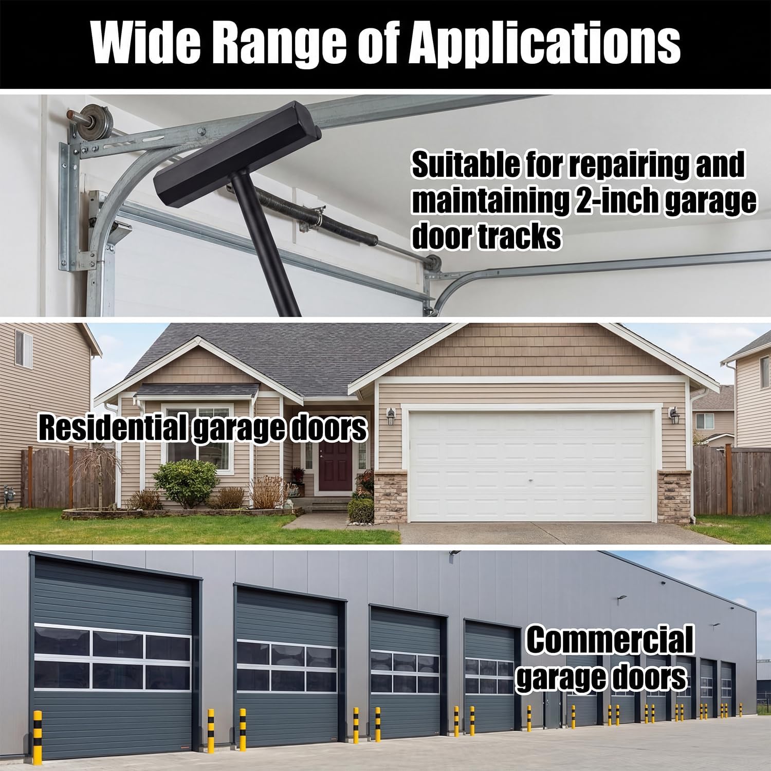 Pro Straightener: Fits 3" roller tracks; one controlled blow realigns bent rails for smooth, wobble-free roll. Alloy-Steel Build: Drop-forged, anti-deform, rust-proof; slip-resistant grip for safe strikes. Any Garage, Any Job: Home or commercial vertical tracks—DIY or tech friendly. Drop-Strike-Done: No skills needed; position, hit, finished in under a minute. Track Saver: Reshapes instead of replacing, cutting parts and labor costs instantly.