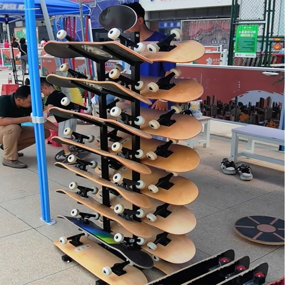 Can be used in ski resorts, stores, sporting goods stores metal display racks, help you organize your items, ladder design, can better display items, clear to find.Product Description:1. Can store skateboards, clubs, basketballs, sports mats and various sports .2. Large capacity display holds up to 14 skis to save space.3. Top can be designed with company logo for special display.Specification:Material: SteelSize:37x55x165 cmStorage Capacity: 14 snowboard holderWhether To Assemble: assembly Color: BlackFeature:Style A is 4 adjustable feet, Style B is 4 universal wheels, two with brakes.Packaging:1x Snowboard Holder