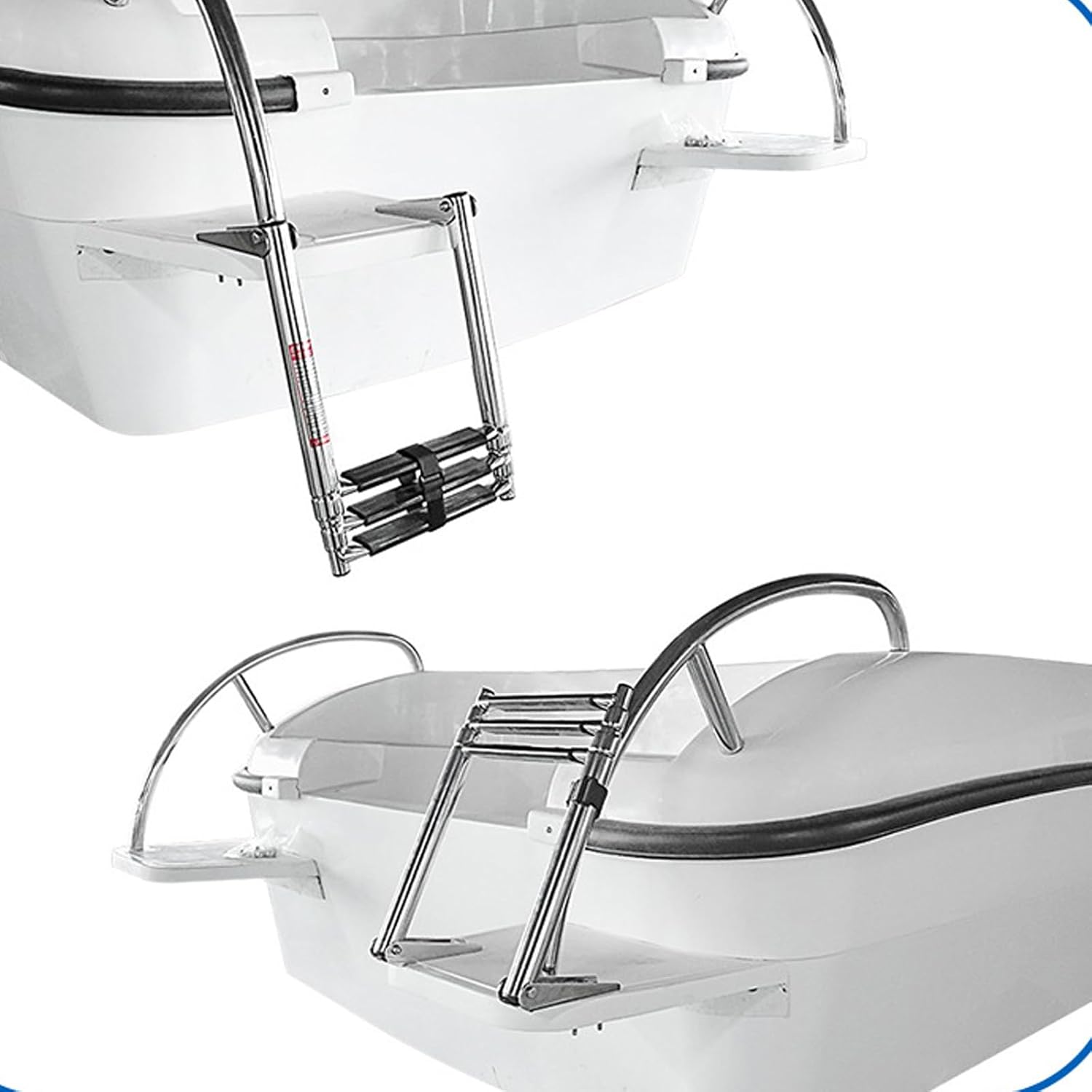 Heavy Duty Telescopic Diving Ladder Four Sections Stainless Steel Anti Slip Design Quick Setup Water Sports Features: This premium stainless steel marine ladder boasts exceptionals resistance, ideal for saltwater environments to make sure long term durability and on boats Featuring a four section telescopic design, it easily adjusts to various heights and includes not slip treads for secure footing during boarding or swimming activities Designed for families, seniors, and water sports enthusiasts, this ladder provides access for users of all ages in marine settings Ideal for boarding yachts, fishing boats, or as a swim platform, it supports up to 250kg for versatile use in leisure and professional water adventures With quick, tool installation in under 2 minutes, this telescopic ladder enhances convenience and for any boating or excursions Specifications: Product name: Four-section handrailless boat telescopic ladder Product materials: stainless steel Product size: as shown in the picture Package Includes: Four section telescopic ladder Note: Before using the accessory, please check if it is compatible Pay attention to the storage methods