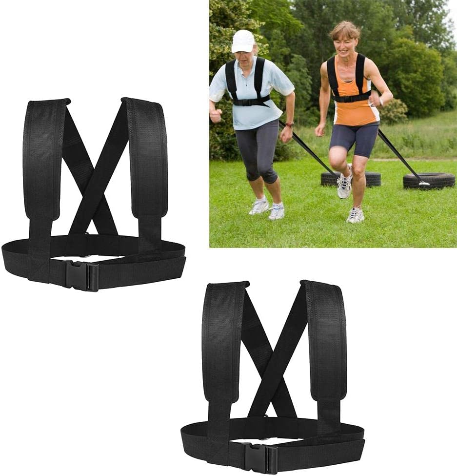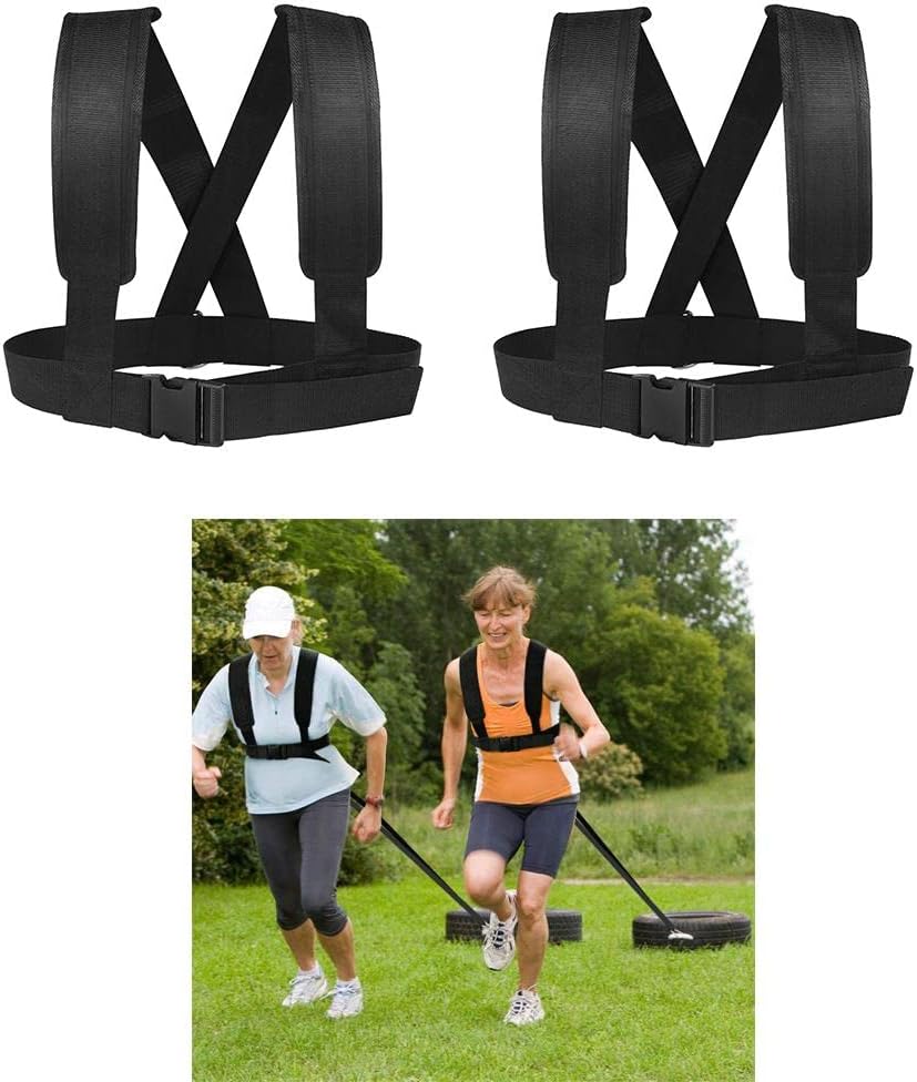 Description: - -This sled fitness harness is made of high strength double layer nylon and steel hook for pulling a tire, sled, resistance training, team sports agility training - -Padded shoulder strap for release your shoulder fatigue and non-, heady duty design make sure your safety during activities - -Heavy duty training hooks for hanging training equipment - -Great for improving running , power strength training, outdoor sled/tire pulling fun - -Bearing Weight: at least 150lbsSpecification: - Material: Nylon, Steel - Pulling Strap Length: 2m/ 6.56ft - Shoulder Strap Width: 10cm/3.94 inches - Strap waist: 84-116cm / 33.1-45.7inch - Color: BlackPackage Includes:2 Pieces Fitness Strap Vest with D 2 Pulling Straps with 6 HooksNote:Please allow slightly difference due to manual measurement. Thanks!