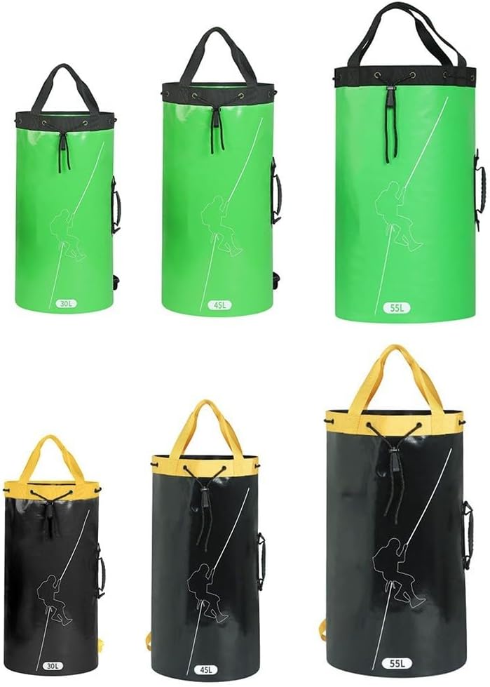 Description:**Made of waterproof material, , lightweight, waterproof, wear resistant*Rope bag for carrying and protecting your rope while climbing, Keeps your rope and gear clean*Drawstring closure make you store things quickly and take them in and out easily*Suitable for outdoor rock climbing, tree arborist, mountaineering, caving, roofing, construction, aerial working, rappelling, descending, abseiling, etc*It's perfect for gym, sport, travel, carry-on, camping, hiking, training and more also a fabulous idea for everyoneSpecification:*Material: Polyester,PVC*Color: Black/Green*Capacity: 30L/45L/55L*Item Size: As picture shown*Package Size: 40*30*15cm*Weight: 825g/950g/980gtPackage Includes:1 x Climbing Rope Bag