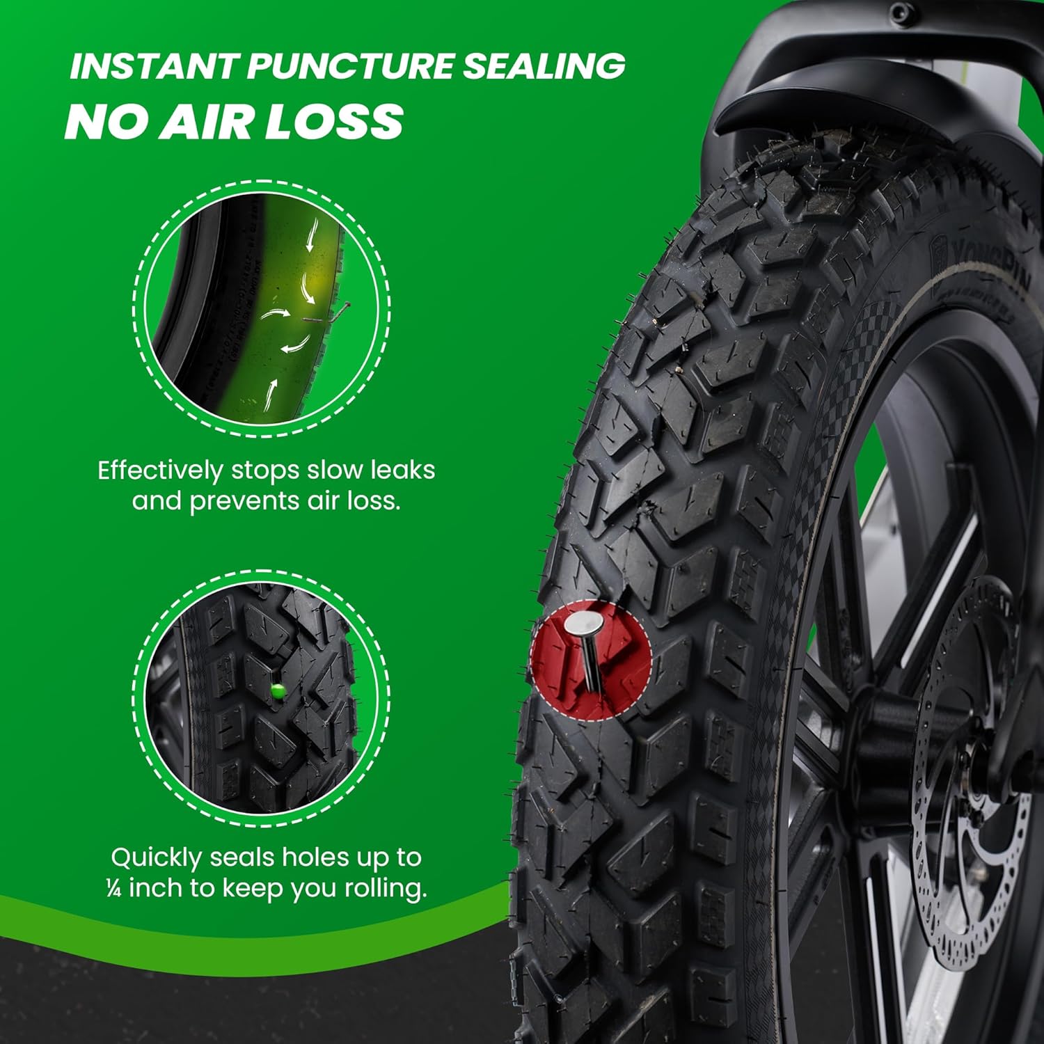 This Ultimate Bundle includes one 26x4 heavy-duty bike tube, one bottle of advanced tire sealant, and one set of advanced fat tire bike liners — delivering comprehensive flat protection for fat tire bikes and e-bikes. The durable tube ensures long-lasting performance and optimal traction, while the advanced sealant and liners work together to seal and prevent punctures across all terrain and weather conditions.