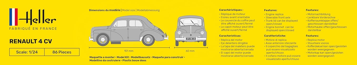 From the Manufacturer The RENAULT 4 CV was presented in the first post-war Paris Motor Show in October 1946. Evolved during the bombings and completed while France was still under rations, this little «car for everyone» created by the engineer Ferdinand Picard would be the vehicle of newly found freedom and a better life. For both families and city use, robust, economical and cheap, the 4CV would be the first French car to produce more than a million of its make: 1,105,547 in a 14-year career.