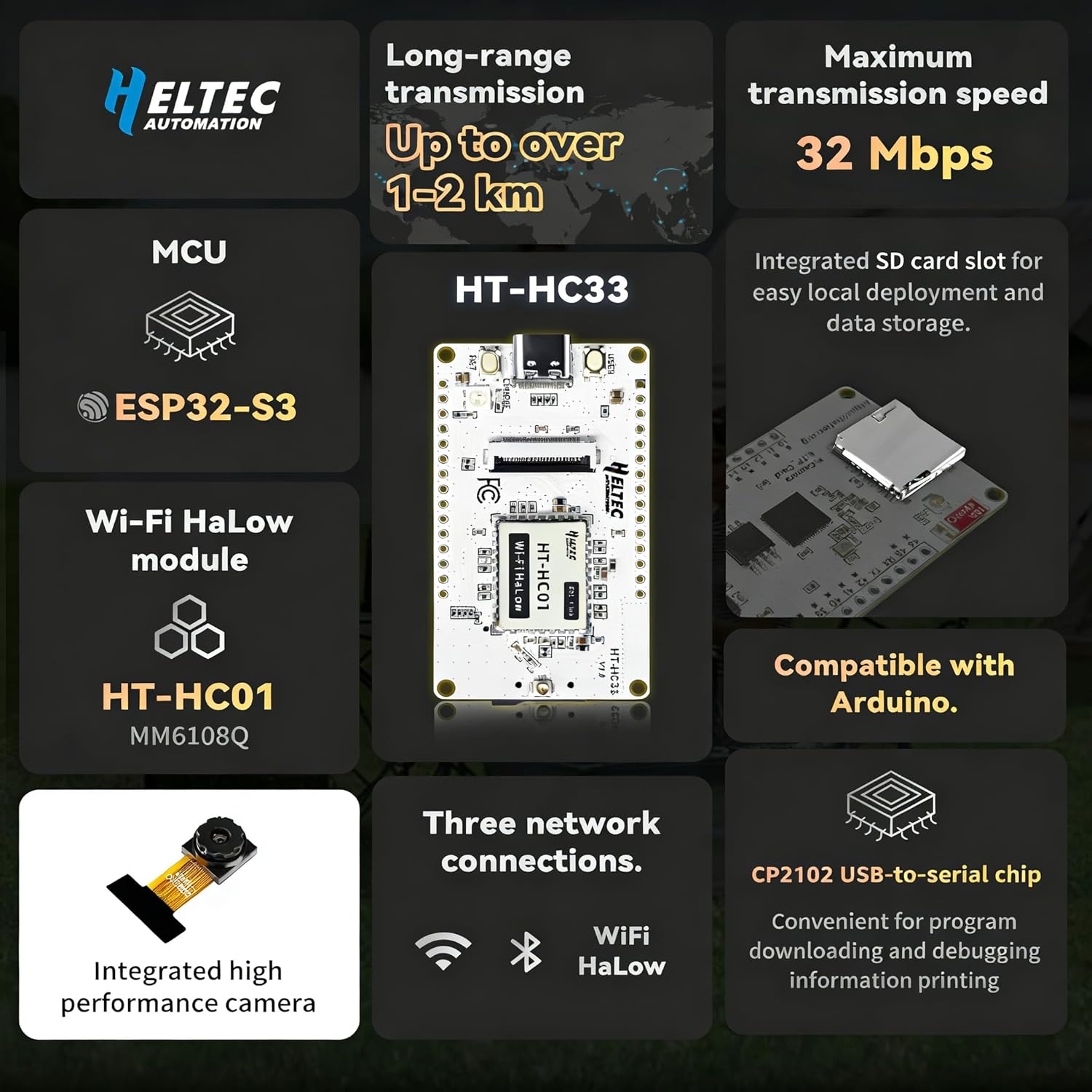 | Connectivity Technology | Wi-Fi HaLow (802.11ah), 2.4 GHz Wi-Fi, Bluetooth 5.0 |