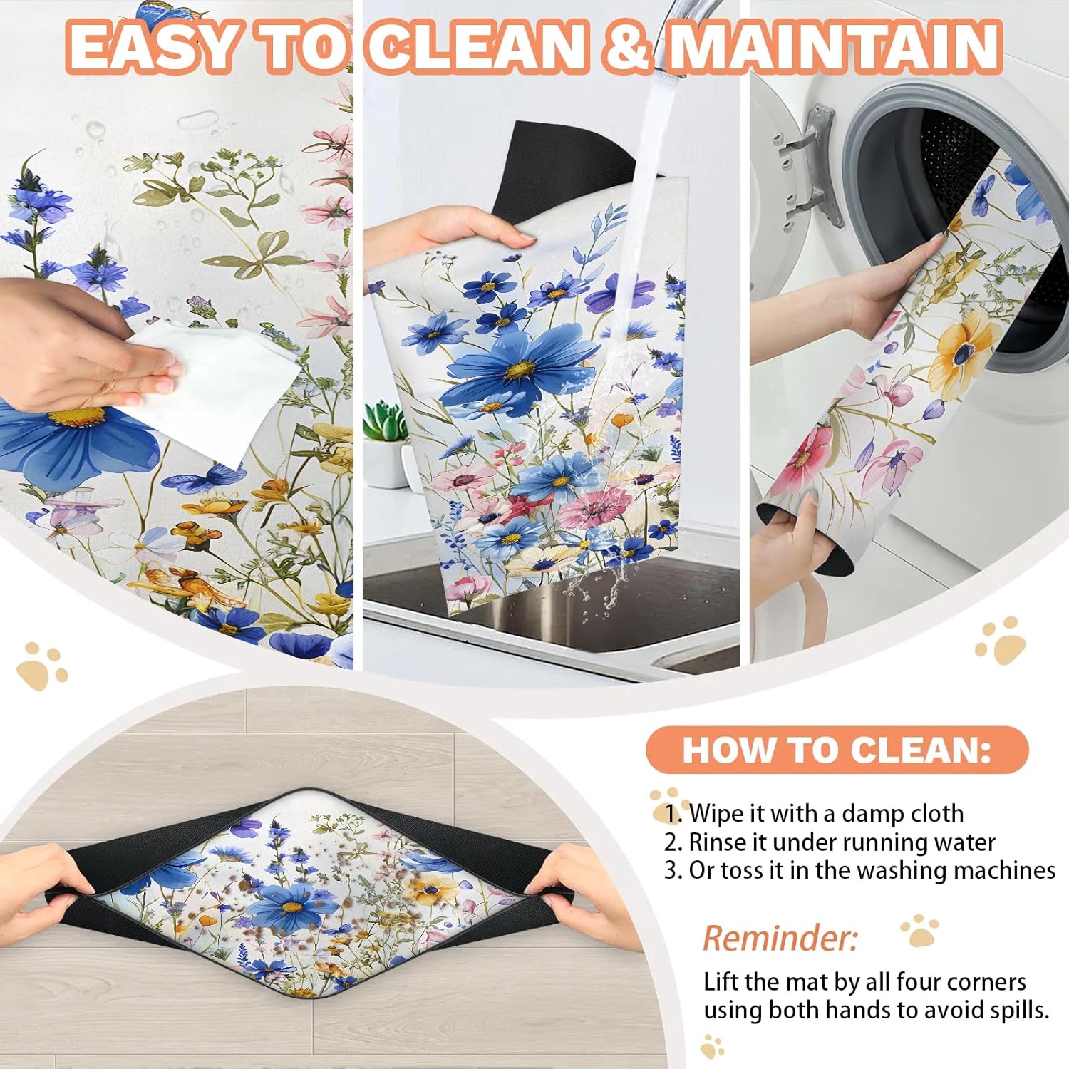 Pet Food Mat:Our company specializes in kitchen home products. The pet feeding mat provides the best decoration and protection for your floor. cat food mat measures 24 x 32 inches and is suitable for large dogs or puppies. The product specification is 1 pcs pet placemat. Dog bowl mat is made of diatomaceous earth material, with a water-absorbent backing to keep the floor clean.Dog and cat food mat can be placed under feeders, water bowls, litter boxes, etc., to prevent pets from wandering around. Dog food mat is washable by hand or machine and can be reused. It is suitable for use in homes, restaurants, kitchens, hotels, and business offices.