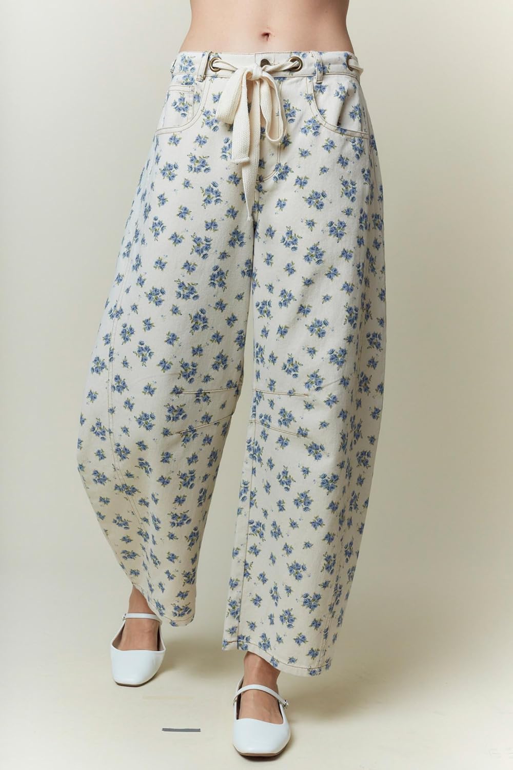 | Model Name | Floral Printed Waist Tie Detail Denim Pants |