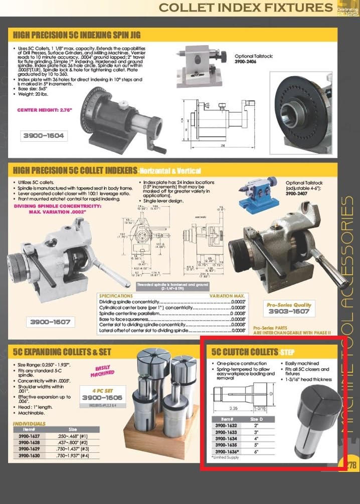 | Included Components | 4 INCH 5C CLUTCH COLLET |