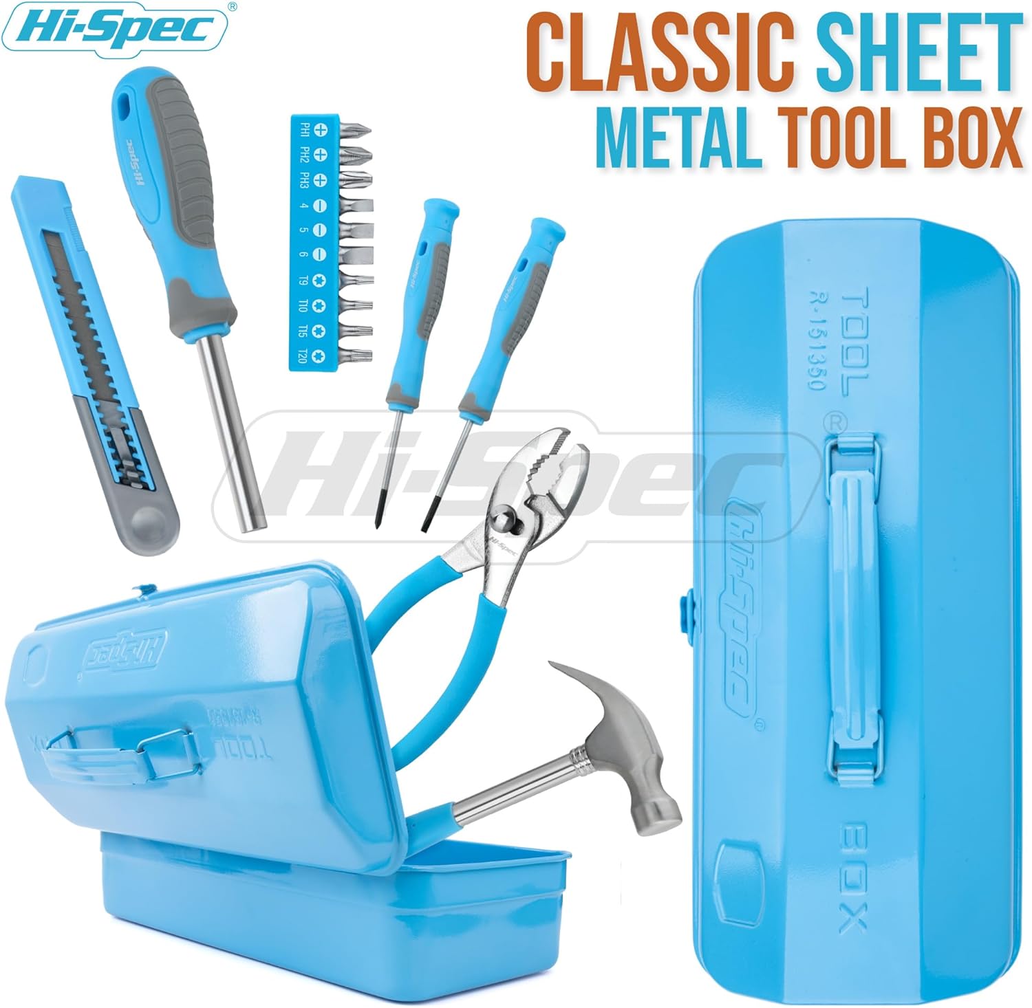 | Included Components | 2pc Precision Screwdrivers / Bit Driver Handle /10pc CR-V Steel Alloy Bits/, Claw Hammer/ Slip-Joint Pliers/ Utility Knife/ Tape Measure / Classic Metel Tool Box |