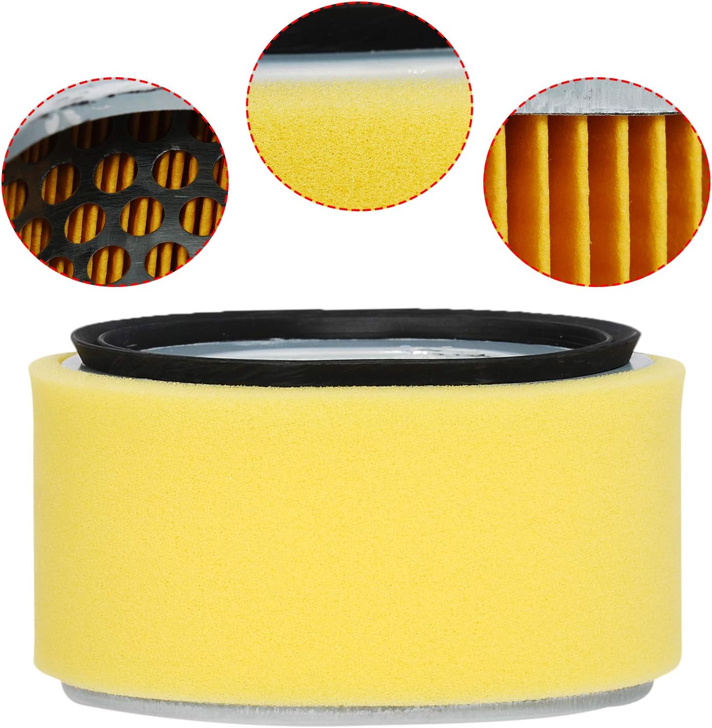 Air filter pre-filter: Size: ID: 2.87 inch (73mm), OD: 5 inch (128mm), Height: 2.96 inch (75mm) Factory Lawn mower engine air filter and foam pre-cleaner, durable and excellent filter paper, metal mesh design, foam pre filter and air filter just like two doors, protecting engine, eliminate contaminating of dirt, dust and debris from the carburetor and engine,improves air flow and prevents dirt and dust. Engines Air Filter foam cleaner Kit: Compatible with Yanmar L100N Diesel Engine Compatible with part #: Yanmar 114210-12590 114211-12510 Package included: 2 x air filter with pre-cleaner Note: This is Non original aftermarket Replacement Parts, please check the size and the pistures carefully replacement for compatibility bereplacement fore ordering it. TIP: Air Filter helps eliminate contaminating of dirt, dust and debris from the carburetor and engine. It provides excellent protection against ingested dirt, improves airflow and prolongs engine life by providing clean filtered air while running. A dirty air filter can cause the engine from not operating properly. The air filter should be checked if the engine drops in power. We recommend replacing your filters every 3 month replacement for best perreplacement formance .